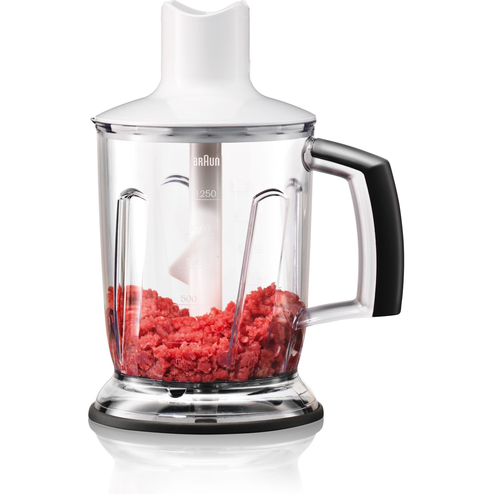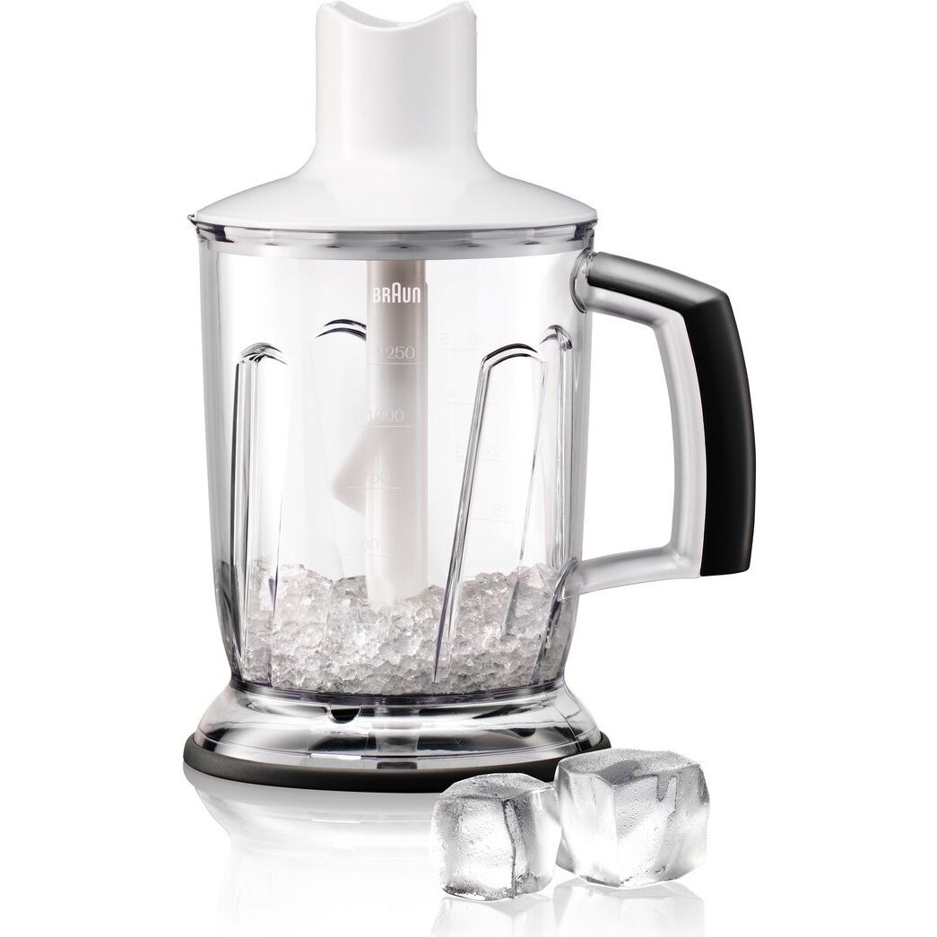 Tocător BRAUN MultiQuick MQ40WH - AX22110064, Capacitate 1.25l, Amestecă, Zdrobește gheața, Sistem EasyClick, Ușor de asamblat, Bază anti-alunecare, Fără BPA, DW Safe (fără capac), Alb