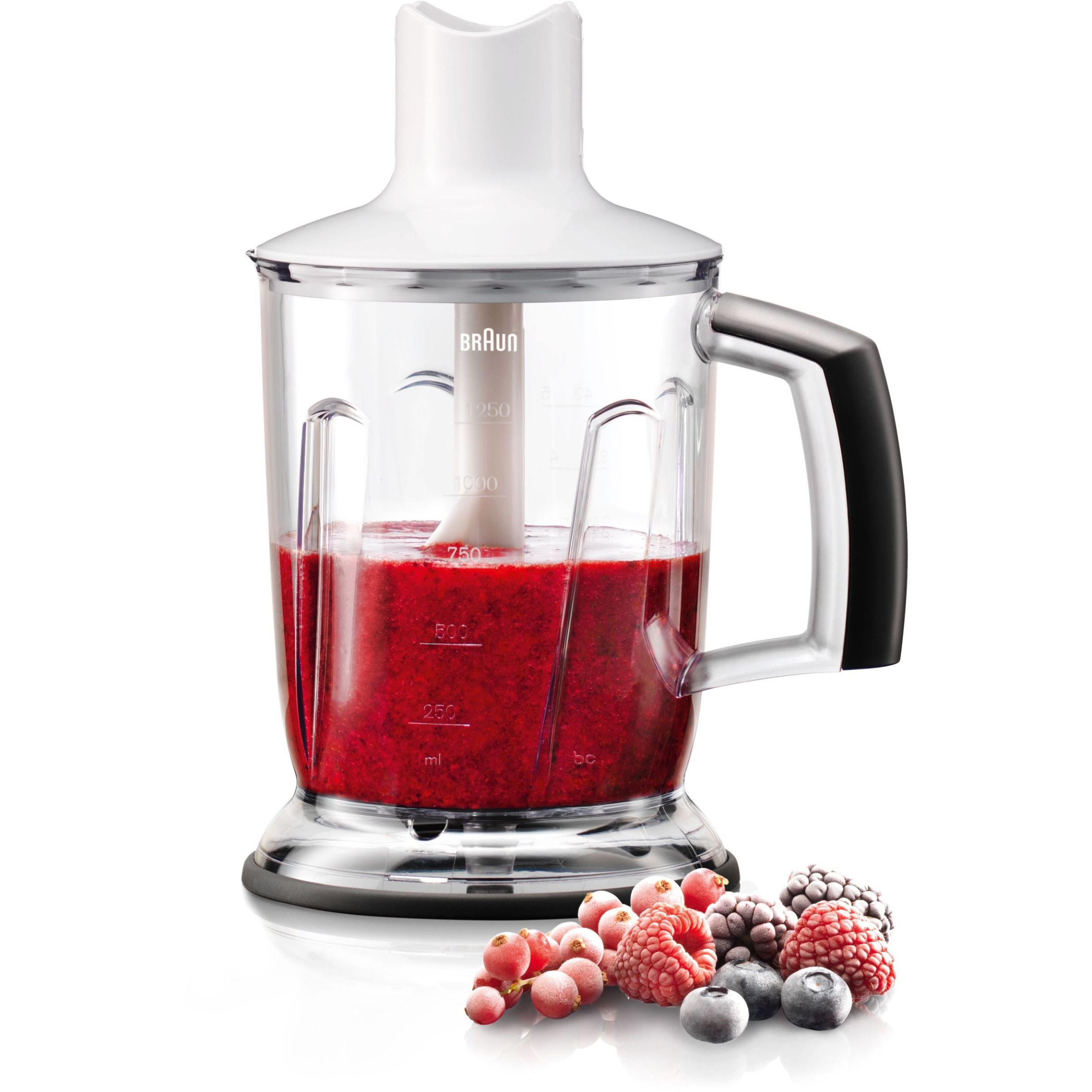 Accesoriu blender de la BRAUN muncește cât doi: vă permite să dați frâu liber creativități, profitând la maximum de rezultatele oferite de blenderul dumneavoastră de mână. Pe lângă faptul că toacă rapid și ușor ingredientele, este perfect pentru prepararea de shake-uri sau băuturi, pentru amestecarea unui aluat ușor sau chiar pentru zdrobirea simplă a cuburilor de gheață.