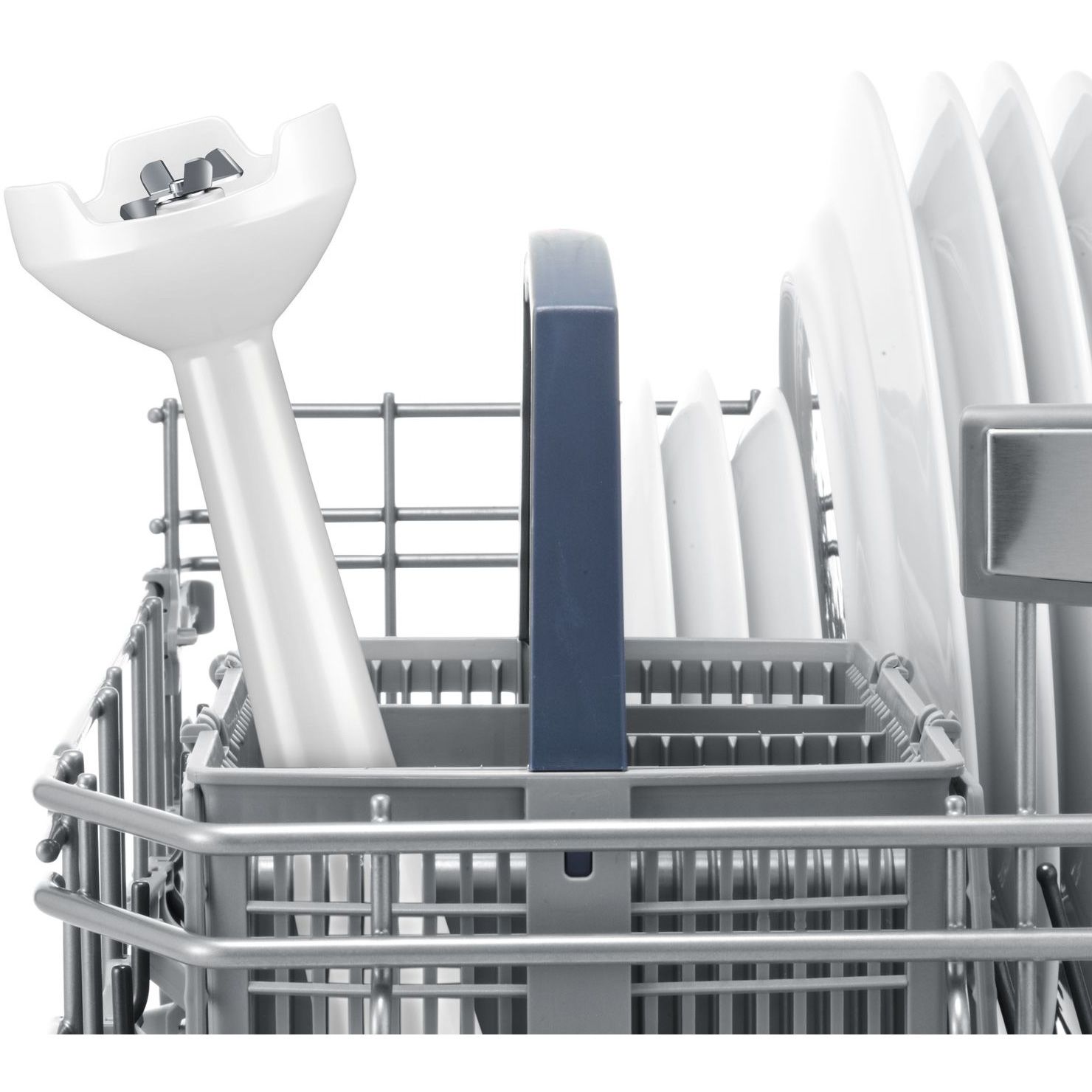 Confort. Pasare, mixare și mărunțire - datorită greutății reduse și a mânerului ergonomic, blenderul CleverMixx se potrivește perfect în mâna ta, fiind simplu și ușor de utilizat. Forma inovativă a piciorului blenderului previne stropirea. Toate accesoriile cu excepţia sistemului de angrenare pentru chopper pot fi curăţate în maşina de spălat vase.