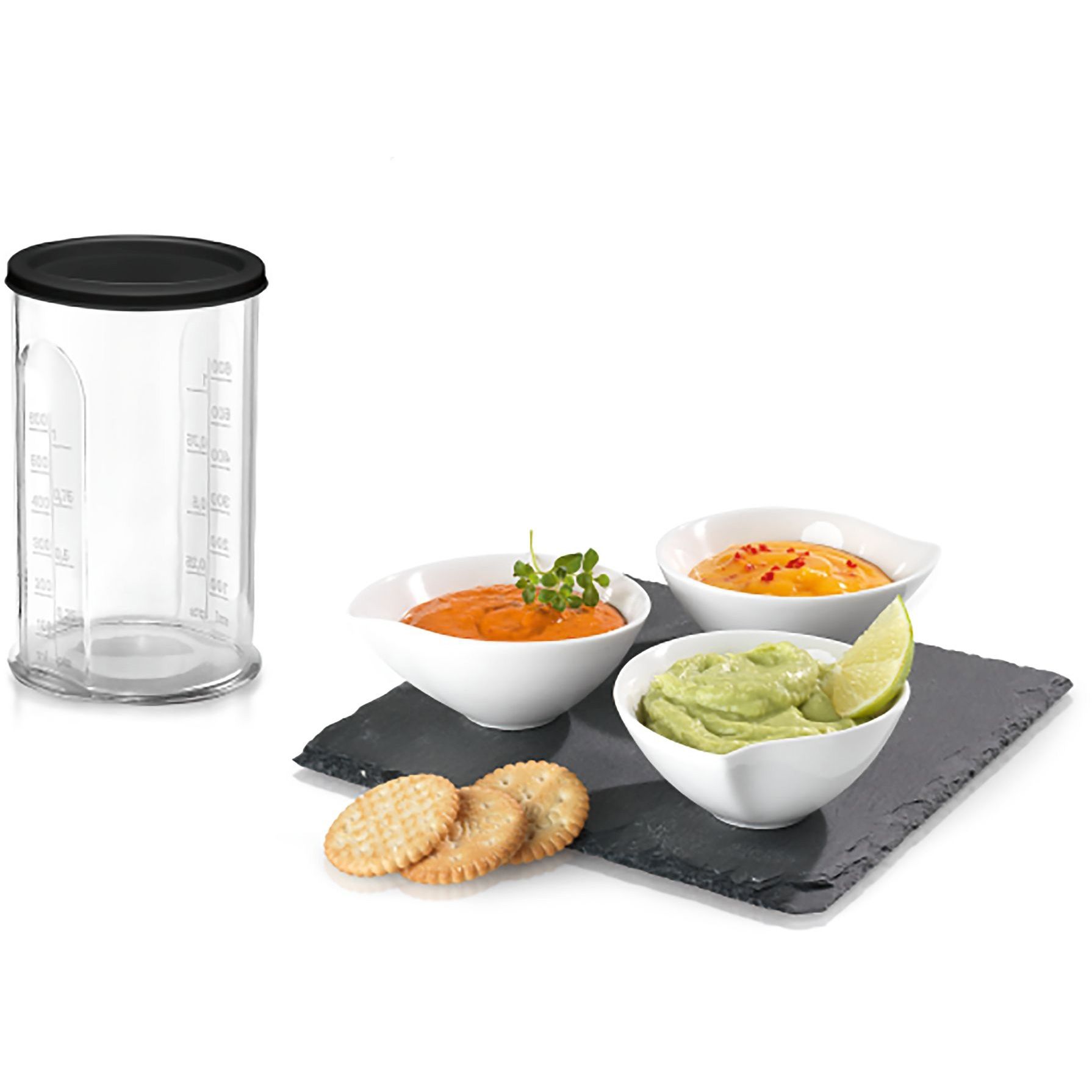 - Vas de mixare gradat (600 ml), cu capac pentru păstrarea preparatelor în frigider.