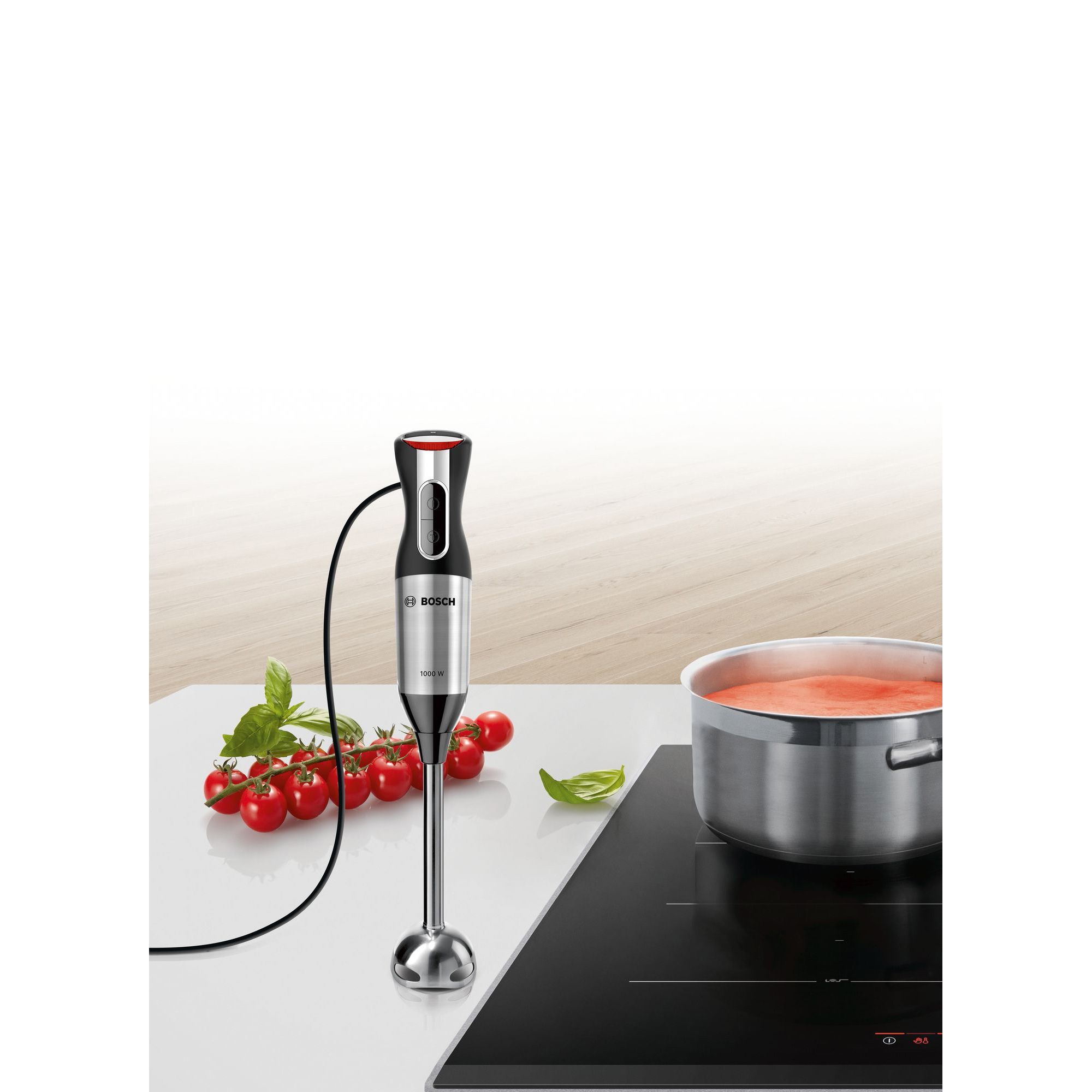 - Calitate germană Bosch: piciorul de mixare din oțel inoxidabil de înaltă calitate este sigur și nu lasă gust mâncării. Este ideal pentru prepararea supelor calde.
