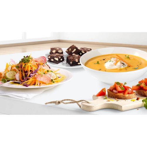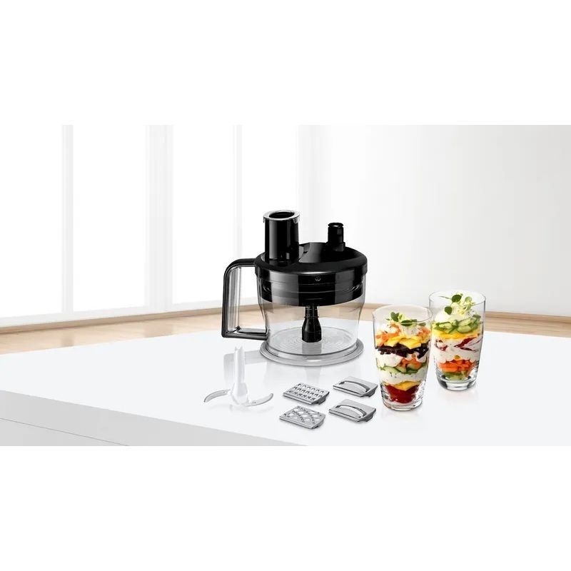 Ai nevoie frecvent de ingrediente feliate pentru diferite tipuri de salate sau de ceapă tocată? Accesoriul pentru mărunțire transformă blenderul într-un aparat versatil. Este ideal pentru feliere și mărunțire sau pentru sarcini obositoare precum tocarea legumelor. Este mereu la îndemână, ușor de depozitat și de curățat.