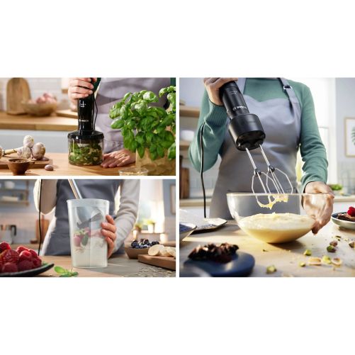 Folosirea blenderului cu o singură mână nu a fost niciodată mai ușoară. Designul compact îl face ușor de manevrat și confortabil în utilizare. Controlezi viteza de procesare cu ajutorul butonului mare de operare. Poate fi folosit cu ușurință atât de persoanele dreptace, cât și de cele stângace.