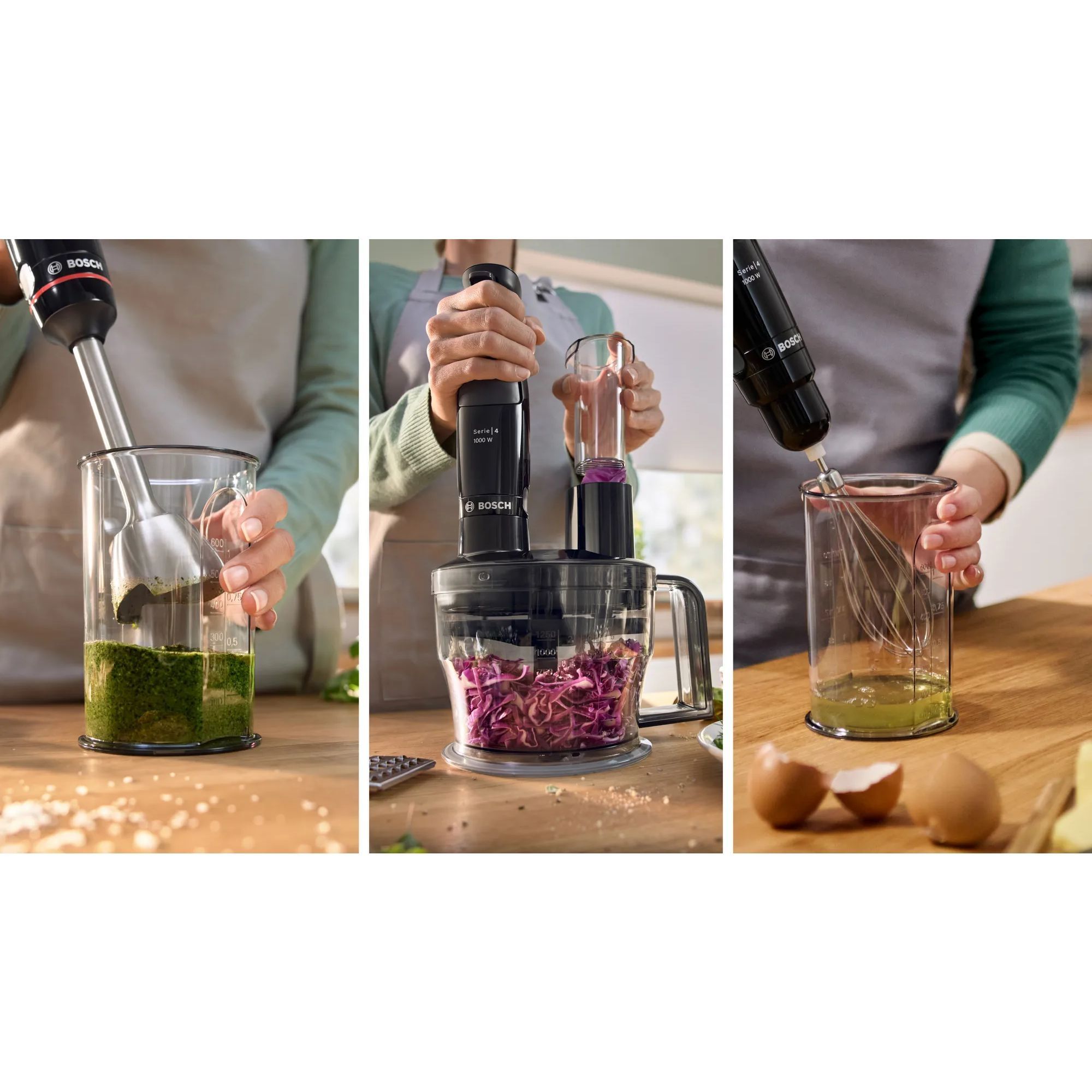 Ai nevoie frecvent de ingrediente feliate pentru diferite tipuri de salate sau de ceapă tocată? Accesoriul pentru mărunțire transformă blenderul într-un aparat versatil. Este ideal pentru feliere și mărunțire sau pentru sarcini obositoare precum tocarea legumelor. Este mereu la îndemână, ușor de depozitat și de curățat.