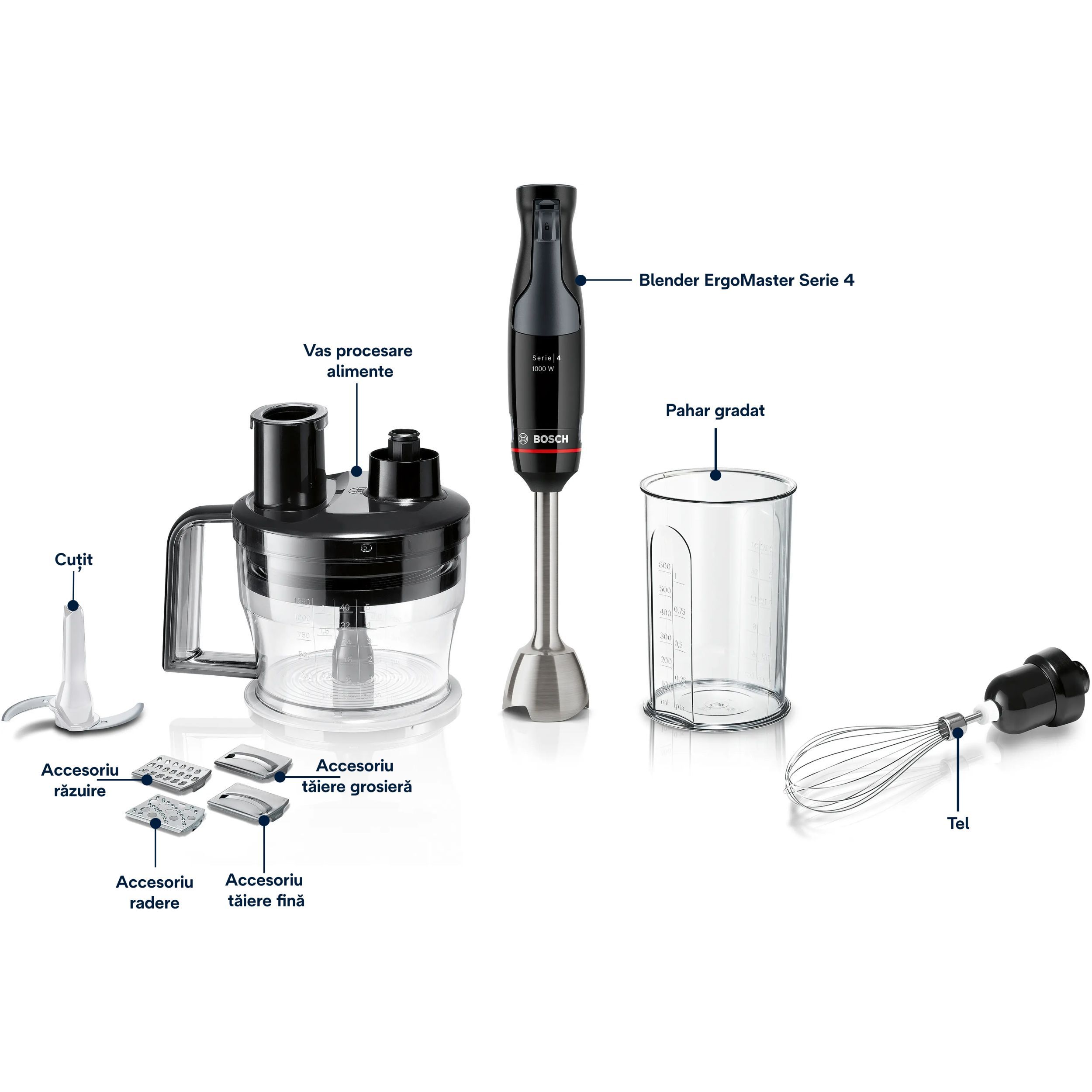 - Food processor pentru tocarea sau mărunțirea diferitelor ingrediente (1,25l volum utilizabil)