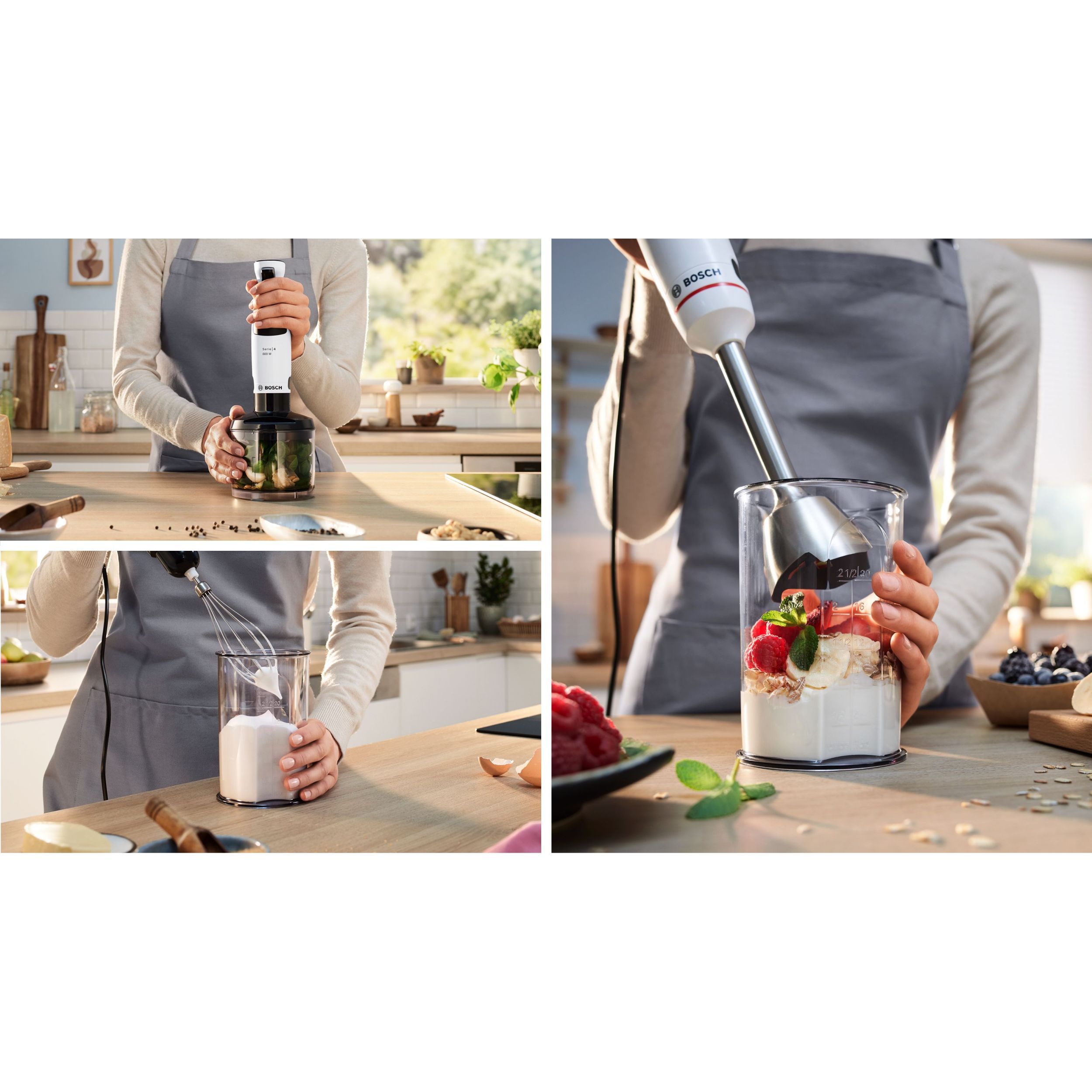 Mâncarea preparată acasă este mult mai gustoasă. Poți folosi accesoriile oricând ai nevoie. Cu ajutorul aparatului pentru mărunțit, ingrediente precum ierburile, nucile, carnea sau ceapa sunt procesate cu ușurință. Telul este ideal pentru a bate frișcă, aluat pentru clătite sau amestec pentru prăjituri.