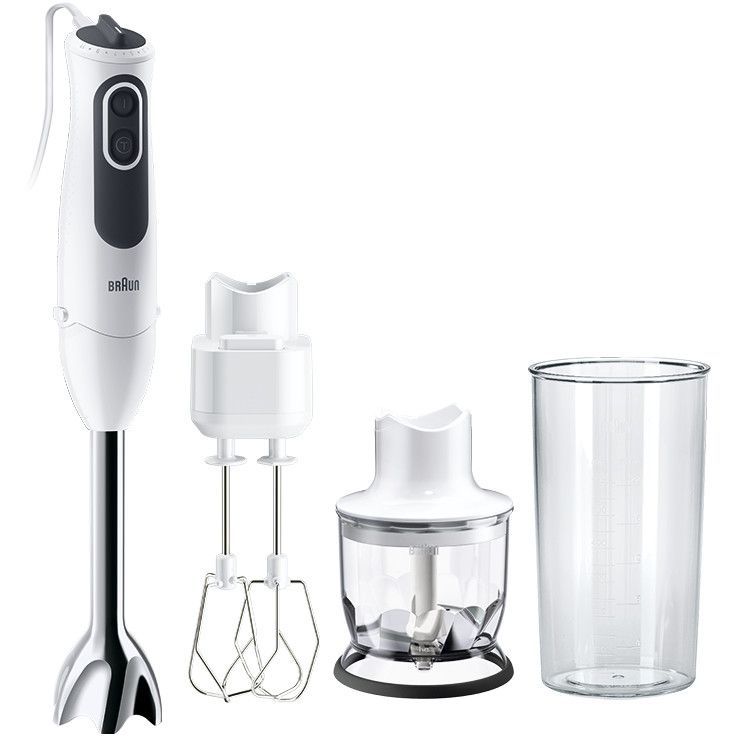 Bucurati-va de o gama variata de retete, cu minim de efort. Noul Multiquick 3 Vario cu VarioControl, va ofera 11 viteze variabile care pot fi ajustate fara oprirea blenderului, pentru o mixare perfecta. Setarile de viteza sunt chiar la indemana. Apasati butonul Turbo pentru rezultate mai fine. Mixerul vertical Braun MQ3125B contine mixul perfect de accesorii. Inlocuitorul perfect pentru mixerul dvs. traditional de mana! Telul dublu poate fi utilizat atunci cand doriti sa pregatiti maioneza de casa, sosuri, creme pentru prajituri sau spuma de albus de ou. Blenderul de mana are in plus un pahar care faciliteaza masurarea ingredientelor si va permite sa amestecati o cantitate mai mare de alimente. Tocatorul de 350 ml marunteste de la carne, branza tare, nuci, ierburi, pana la legume si fructe, in cateva secunde.