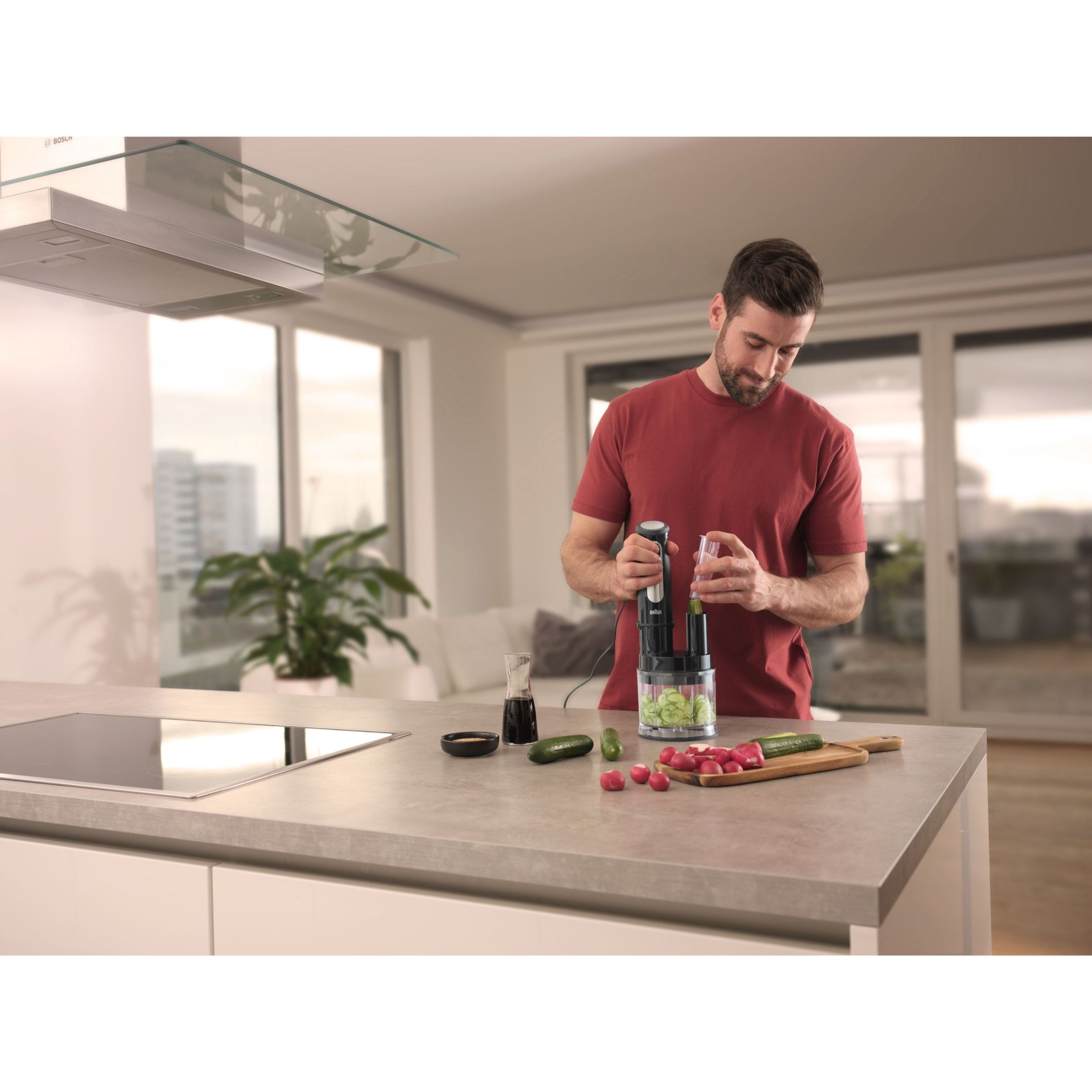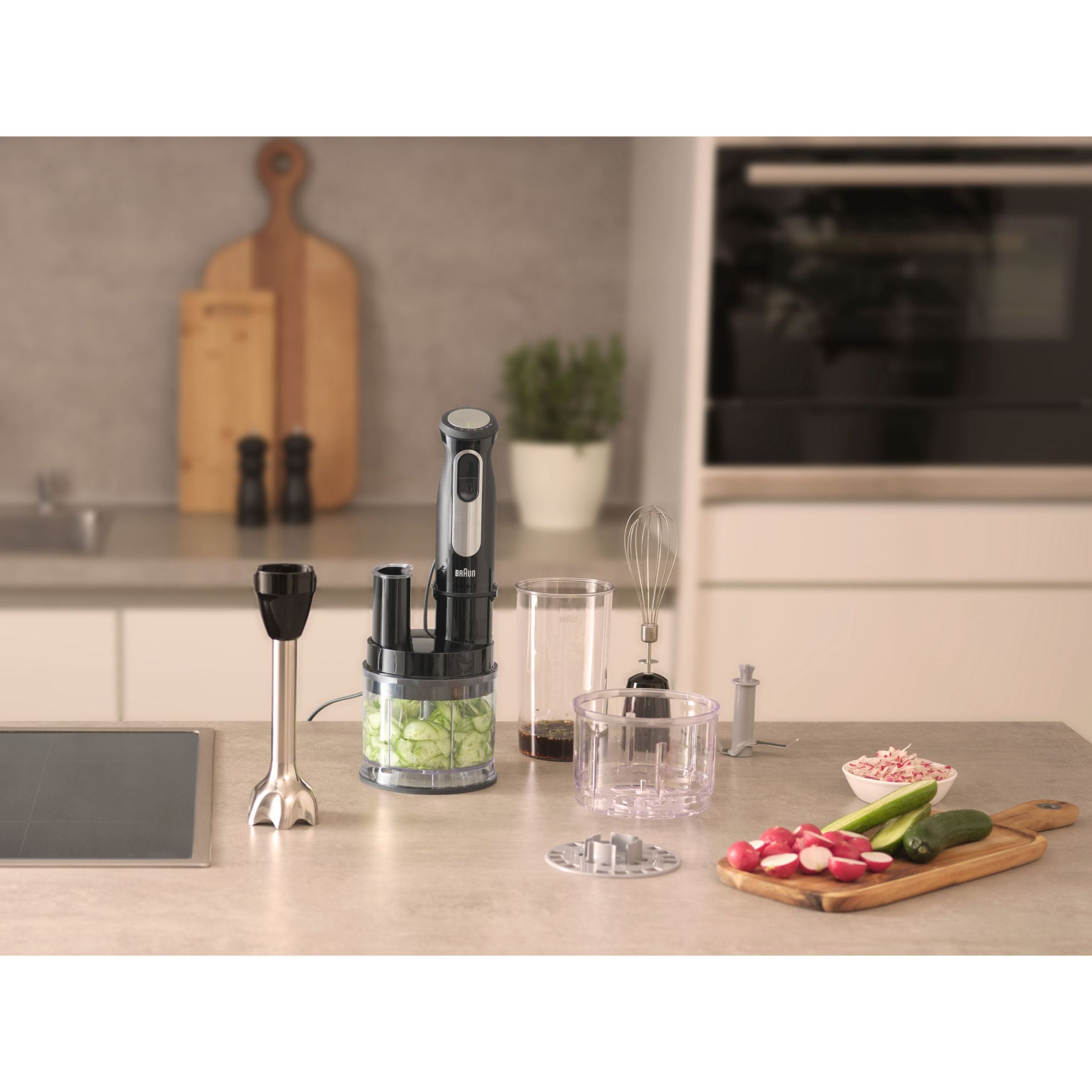 Feliază, mărunțește, toacă sau mixează propriile sosuri și creme delicioase - acum mai mic,mai ușor și foarte ușor de manevrat. Cu o amprentă cu 45% mai mică*,vei economisi spațiu fără a face compromisuri în privința rezultatelor.