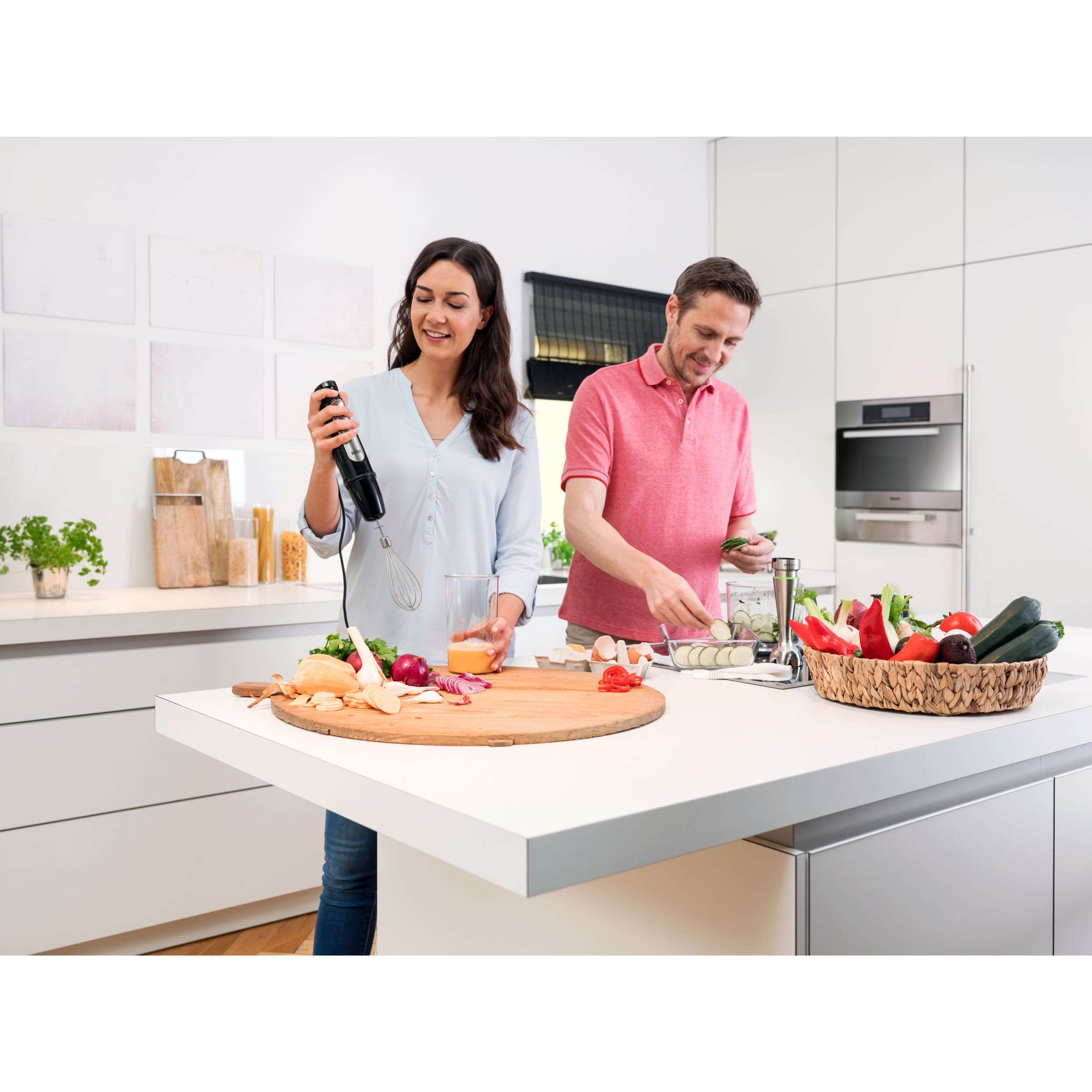 Toacă fără efort nuci, ghimbir sau alte ingrediente dificil de mărunțit,datorită sistemului unic BRAUN ActiveBlade, care se deplasează în sus și în jos. Axul inovator vă oferă o suprafață de tăiere cu 250% mai activă.*