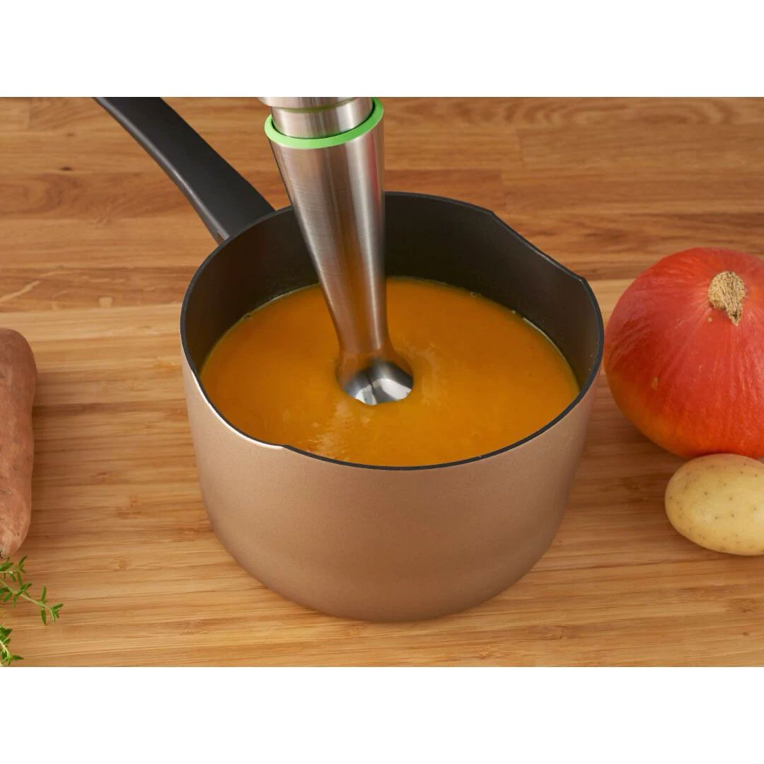 Rezultate de amestecare de până la 6 ori mai fine¹ și performanță cu 60% mai rapidă² pentru preparate mai gustoase și cu textură mai uniformă, fără bucăți nedorite. ¹ comparativ cu MQ100 pentru supă de legume ² comparativ cu MQ100 pentru suc de morcov.