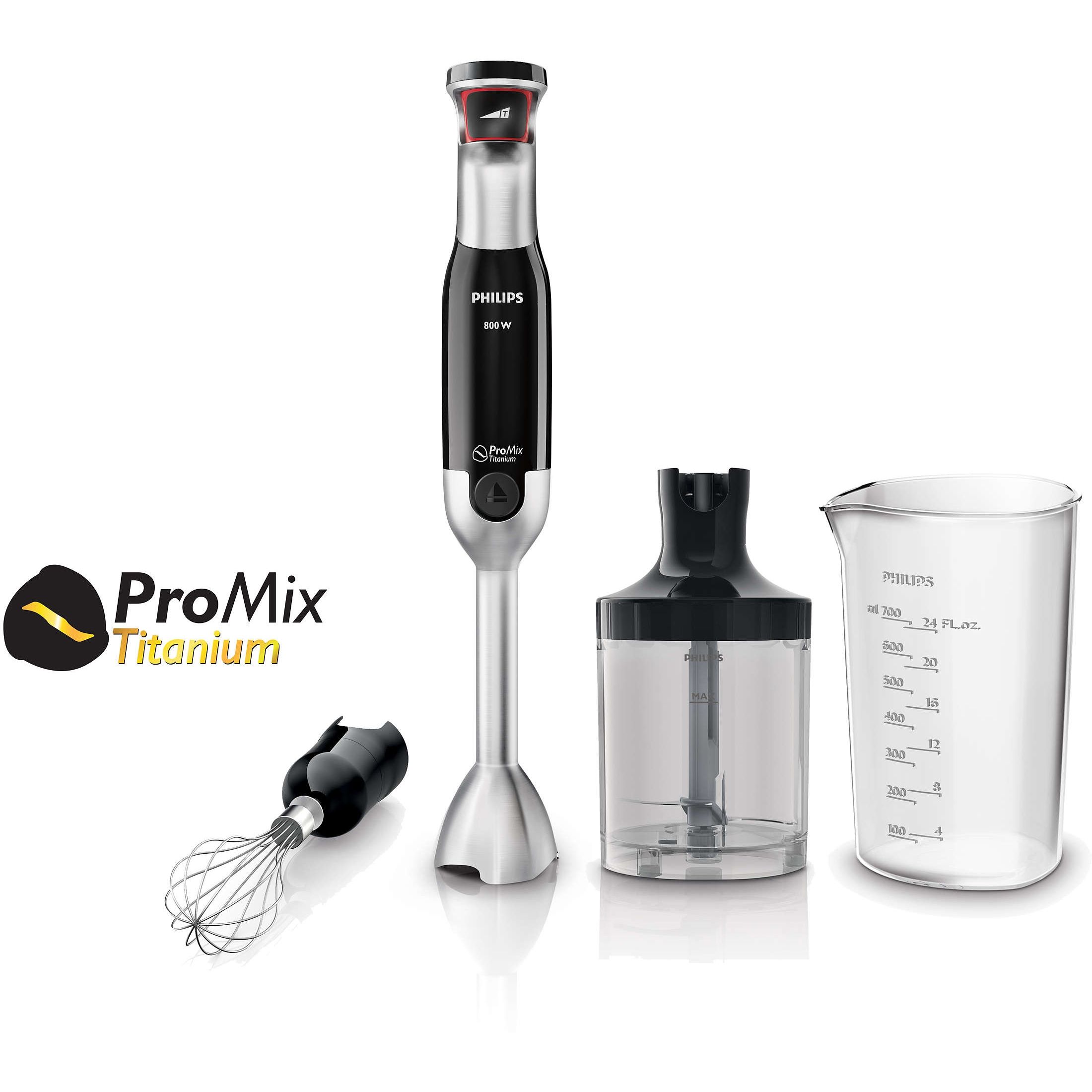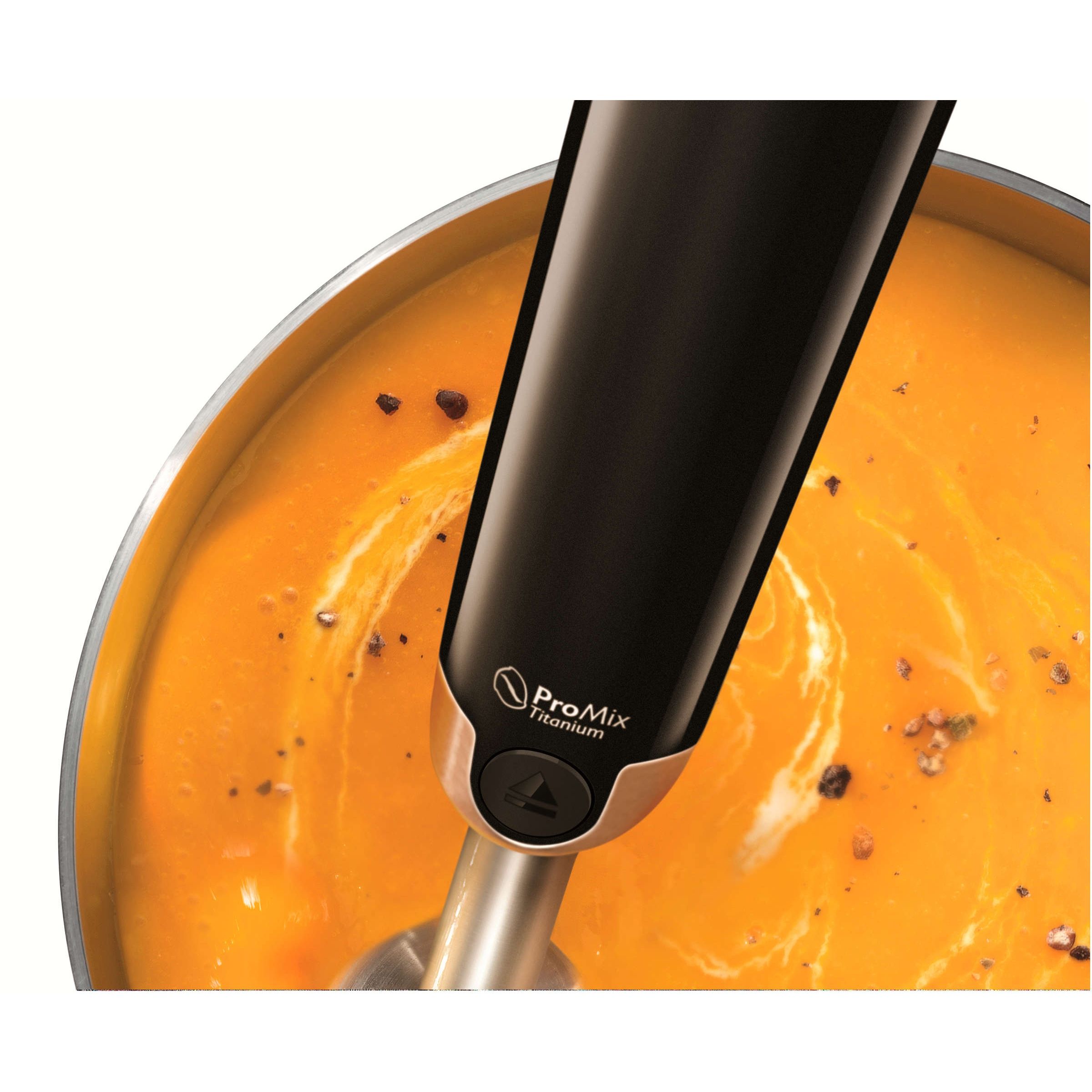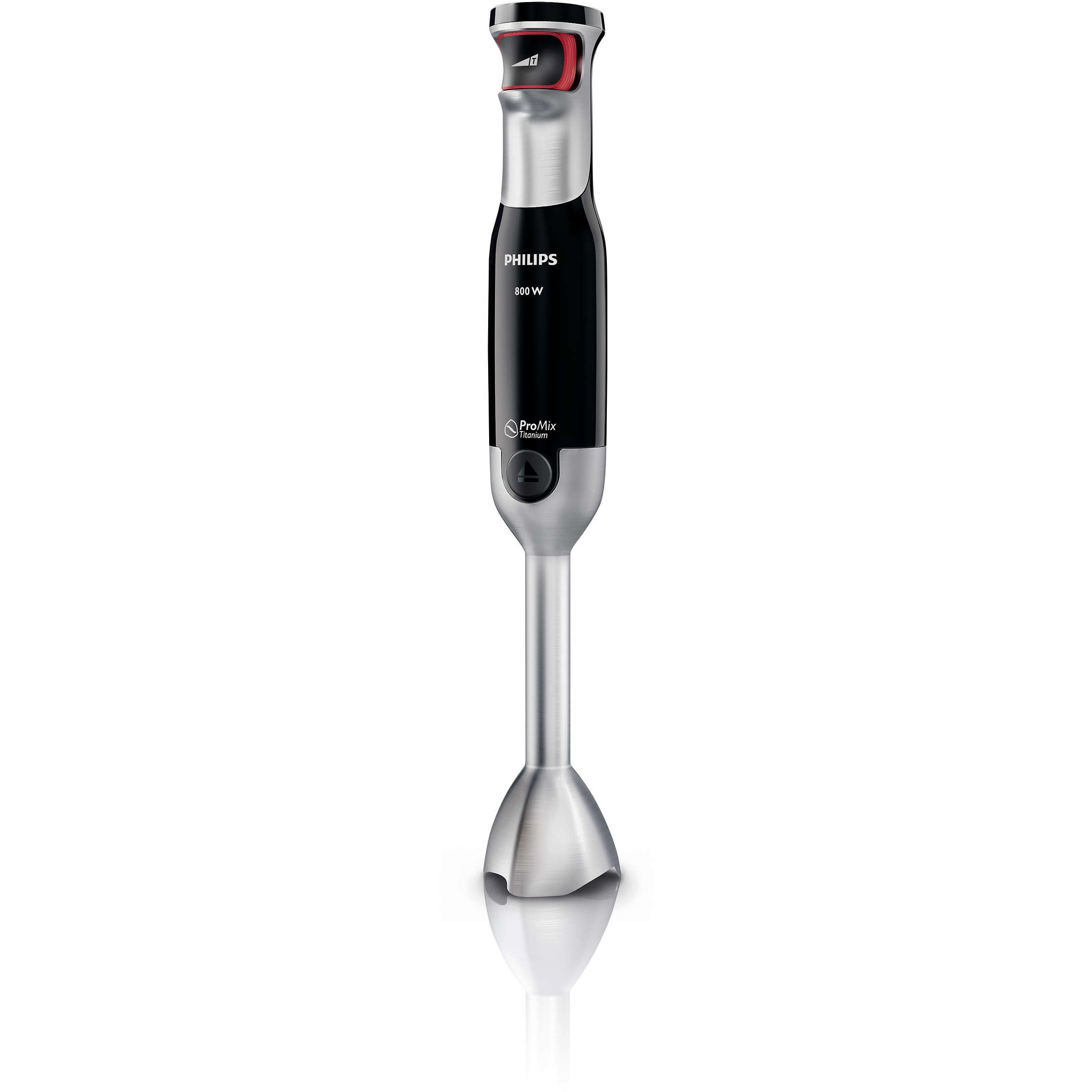 Lame cu înveliş de titan: de 6 ori mai dure decât oţelul. Învelişul din titan (TiN) face cuţitul de şase ori mai dur decât un cuţit obişnuit din oţel inoxidabil şi asigură o performanţă excelentă îndelungată. Acesta este combinat cu forma optimizată a cuţitului şi cu forma unică, triangulară ProMix a barei, pentru rezultate excelente de amestecare. Cuţitul este sigur pentru alimente.