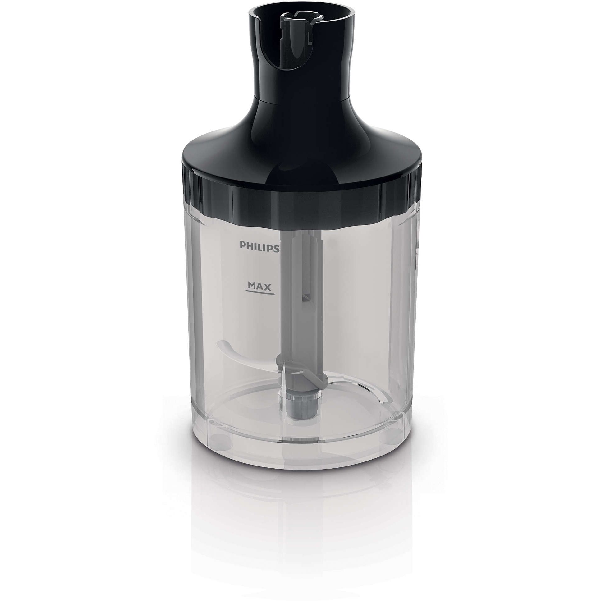 Tocător XL pentru a toca ceapă, carne, nuci, brânză, ciocolată. Cu accesoriul tocător XL (1000 ml) al mixerului vertical Philips poţi tăia cantităţi mari de carne, plante aromatice, nuci, brânză, ciocolată şi ceapă în câteva secunde.