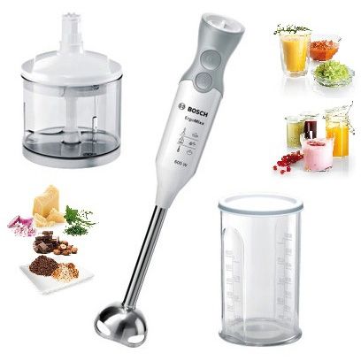Quattro Blade — inovație Bosch. Cuțitul inovativ QuattroBlade (cu 4 lame) asigură rezultate de perfecte de tăiere, mixare și mărunțire. Cuțitul cu 4 lame procesează ingredientele rapid, temeinic și uniform.