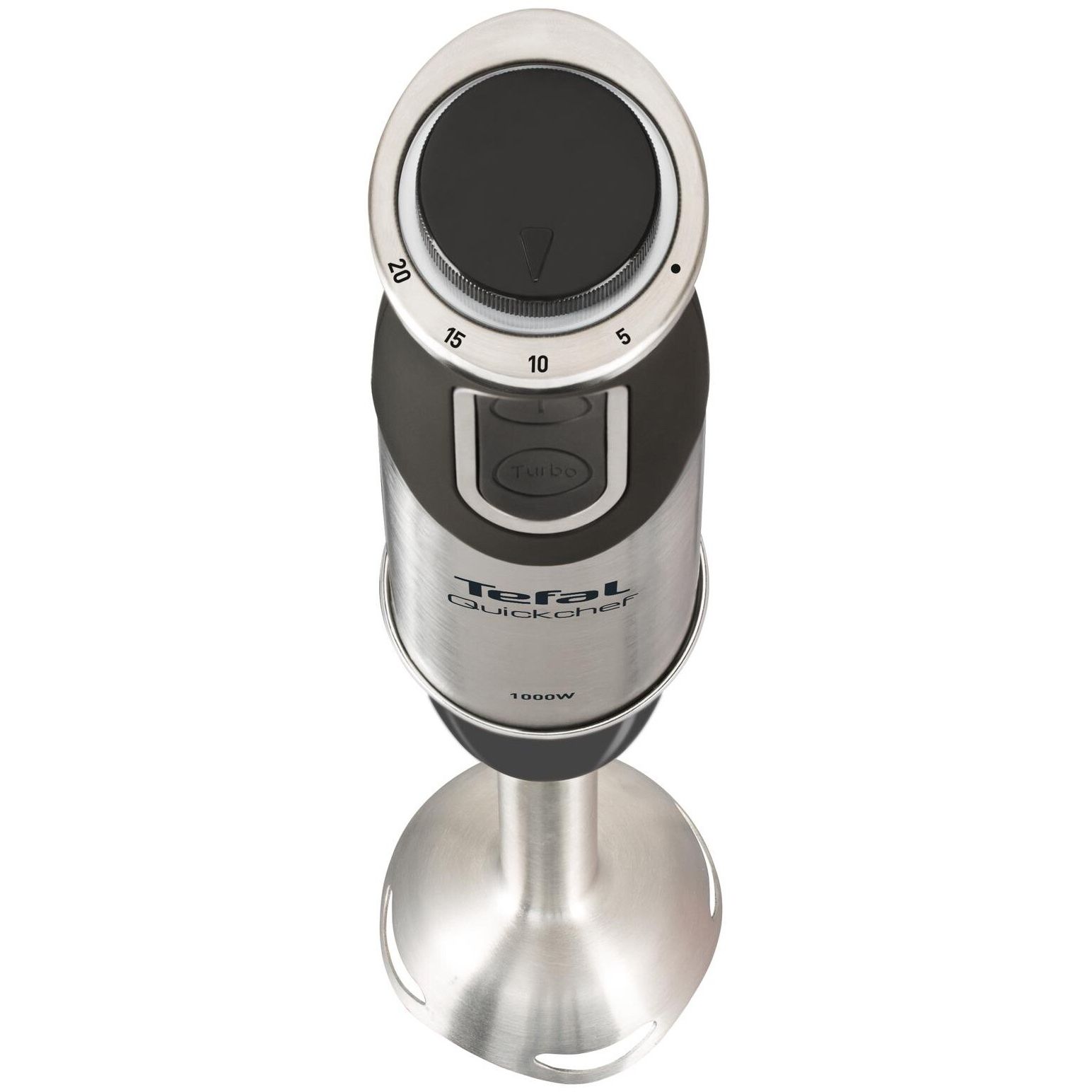 Puterea maximă de mixare este acum la îndemână. Cu blenderul de mână Quickchef, bucură-te de putere optimă, cu minim de efort. Prepară în cel mai scurt timp o gamă largă de preparate, datorită motorului de 1000 W și păstrează controlul cu cele 20 de viteze, care pot fi ajustate fără oprirea blenderului, într-un mod intuitiv datorită iluminării de pe fundal. Sistemul antistropire și mânerul antialunecare oferă confort în utilizare, în timp ce părțile compatibile cu mașina de spălat vase facilitează curățarea. Nu în ultimul rând, blenderul este dotat cu un pahar gradat de 800 ml și un tocător de 500 ml pentru a putea toca o gamă largă de ingrediente și un accesoriu de tip tel pentru a obține preparate fără efort. |