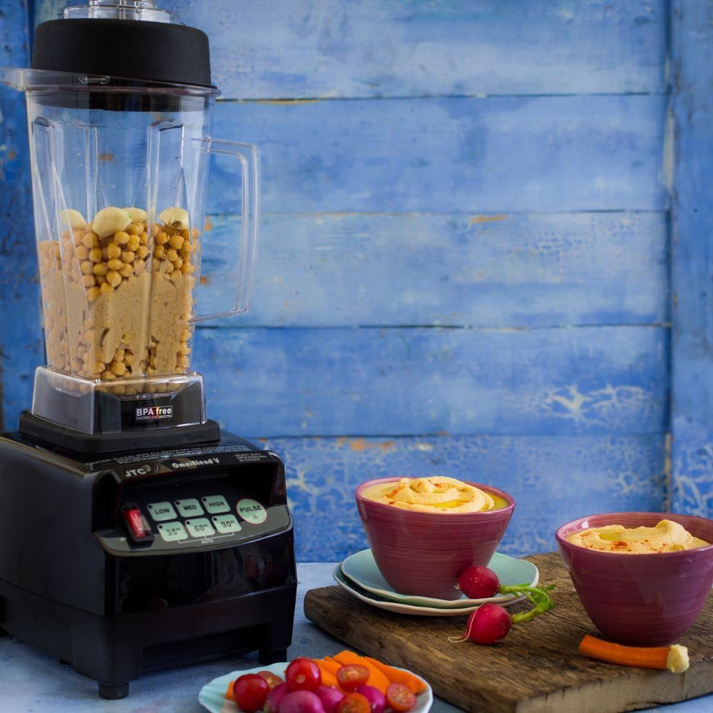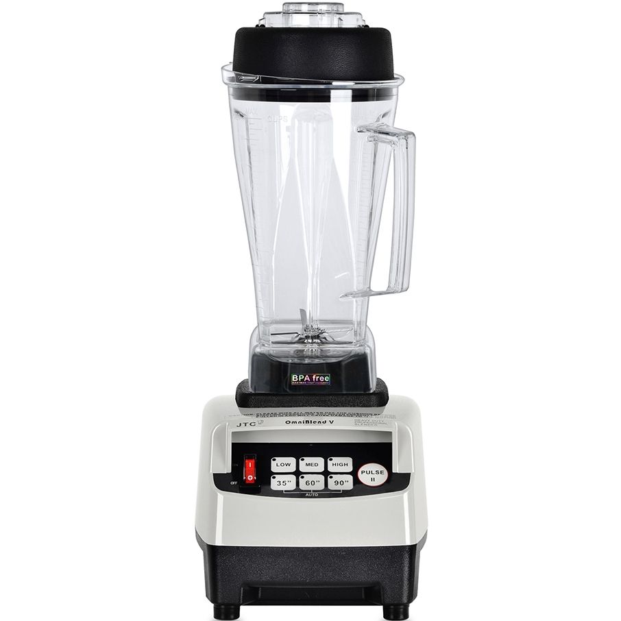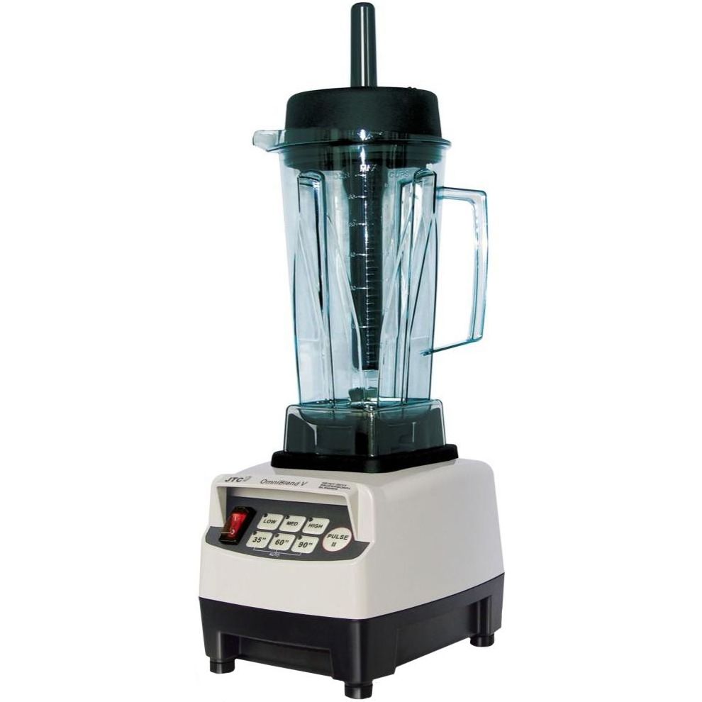 JTC OmniBlend V este un blender care isi propune sa redefineasca conceptul de bun si ieftin. Fabricat din cele mai bune materiale, acest blender rivalizeaza ca si calitate, precizie sau anduranta cele mai prestigioase marci din domeniu, fiind insa mai accesibil ca si pret. Motorul dezvolta o putere de mixare de 3 cai putere, echivalenta unui consum de 2238 W, chiar daca aparatul are un consum indicat de 950 W. Aceasta abilitate se datoreaza reductorului performant si proiectarii ingenioase, viteza maxima de rotatie a lamelor fiind de aproximativ 38.000 rotatii pe minut. Aceste caracteristici ii permit aparatului sa zdrobeasca ingrediente foarte dure si sa reziste cu brio unui regim de utilizare intens, in baruri, restaurante, etc.Lamele sunt construite din otel inoxidabil inalt aliat, 4 sunt pentru taiere si zdrobire iar 2 sunt orizontale - acestea previn acumularea continutului mai dens in partea de jos a bolului prin crearea unui efect de suctiune care antreneaza ingredientele ascendent pentru a fi procesate. Lamele pot procesa ingrediente umede sau uscate, fara a fi nevoie sa schimbati bolul. Zdrobesc gheata cu usurinta, mixeaza fara efort nuci, fructe, cafea, cereale, etc. JTC OmniBlend fabrica bolurile sale dintr-un co-poliester de ultima generatie, denumit Eastman Tritan, aprobat de toate forurile abilitate din lume (CE, UL, FDA, etc.) pentru a fi folosit in manufacturarea aparatelor si bunurilor pentru utilizare alimentara sau casnica. Nu contine BPA sau alte substante cunoscute a fi daunatoare, are punctul de topire foarte ridicat (mai mare de 120 °C) facandu-l ideal si pentru obtinerea supelor sau a altor preparate fierbinti. Diferenta de pret dintre modele nu rezulta din calitatea diferita a materialelor folosite ci din variatia functiilor. OmniBlend V are un panou digital de control care va permite sa selectati una dintre cele trei nivele de intensitate al mixarii (Low, Medium, High), sa alegeti unul dintre programele prestabilite de mixare, de 30, 60 sau 90 de secunde, gandite pentru a va mixa perfect ingredientele introduse. Exista si optiunea de a folsoi apartul in regimul putere maxima – instant (Instant Full Power)
