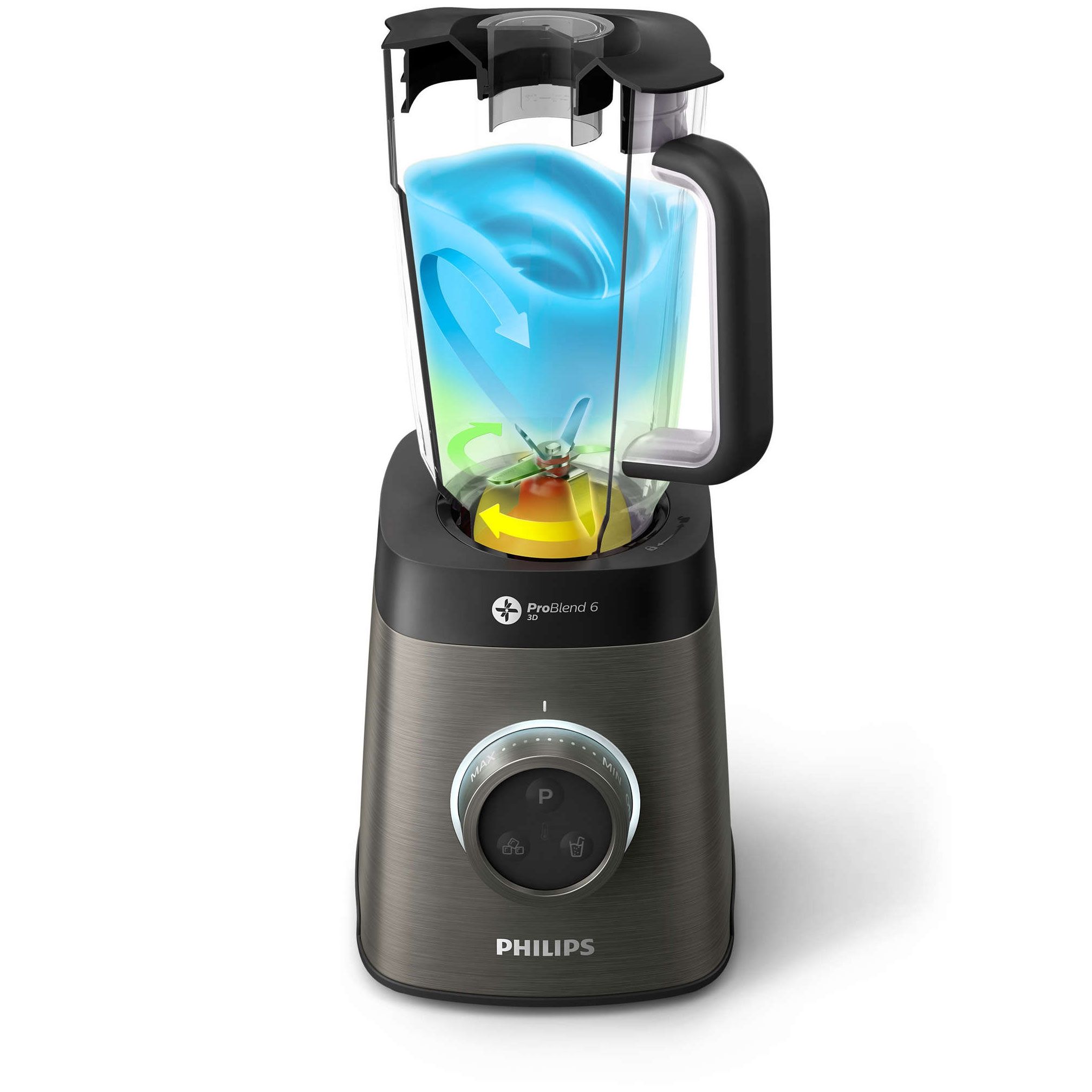 Vas de blender lavabil în maşina de spălat vase. Toate piesele detaşabile ale blenderului Philips pot fi spălate în maşina de spălat vase, exceptând blocul tăietor, care poate fi curăţat uşor prin clătire. Baza poate fi curăţată prin ştergere, dacă este cazul.
