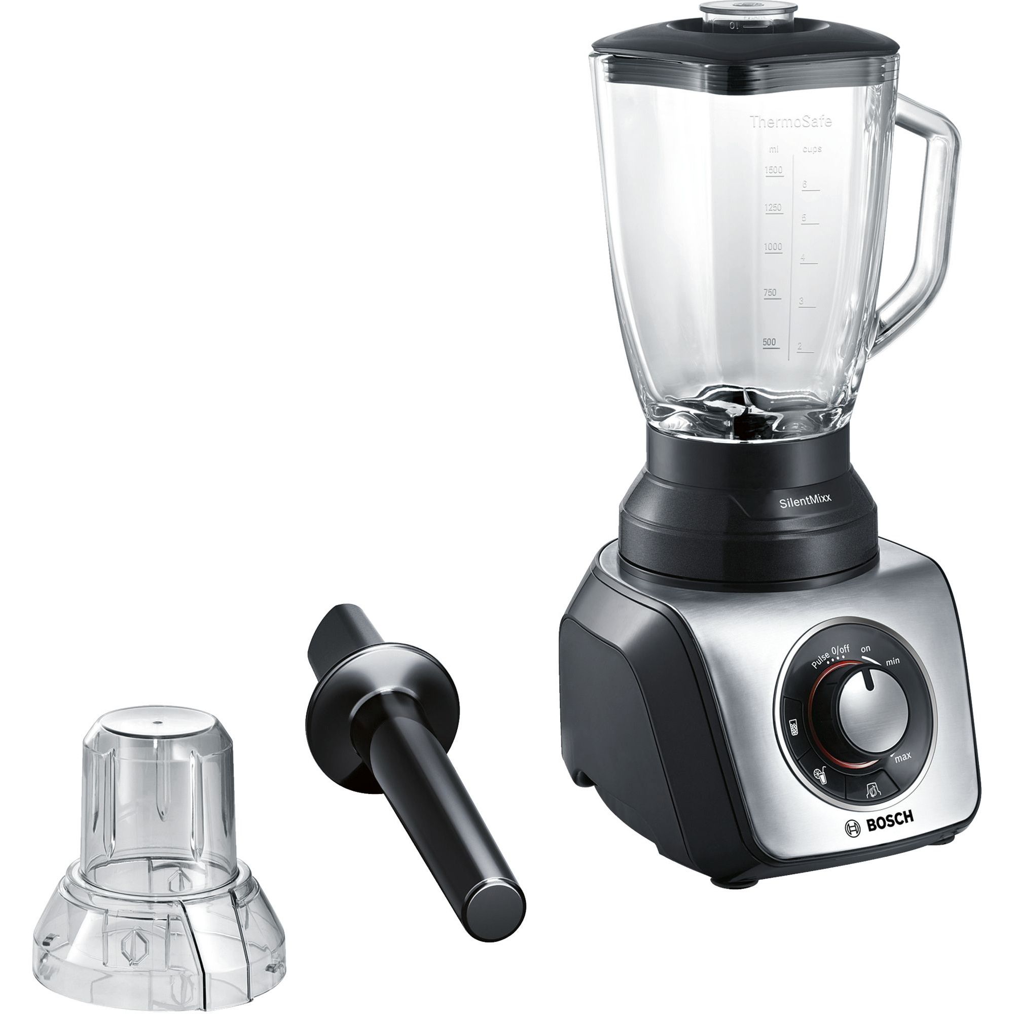 Confort. Cuţit din oţel inoxidabil cu sistem Easy KlickKnife uşor de curăţat( pentru tăiere, tocare şi mixare cu precizie). 3 programe Auto pentru sfărâmare gheață, smoothies și mărunțire. Reglare continuă a vitezei cu indicator LED și funcție Pulse.