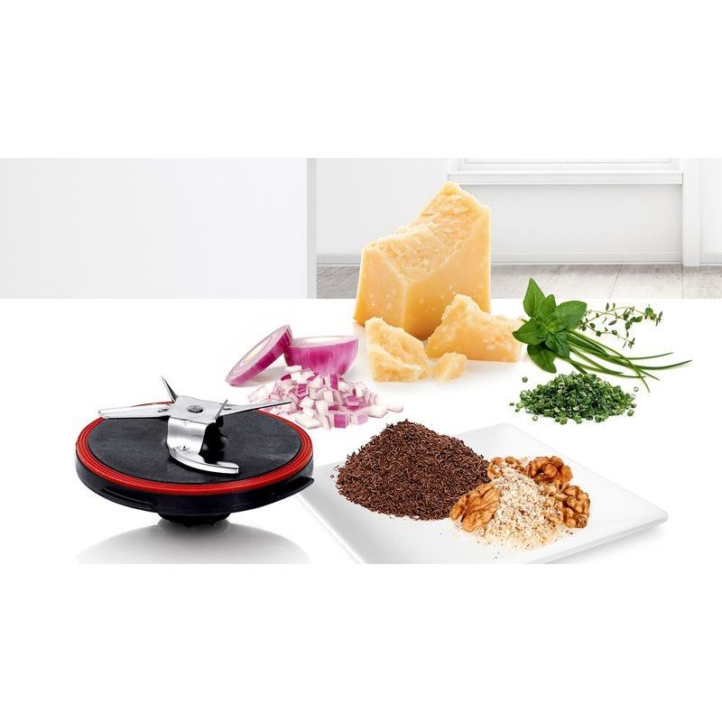 Tocător pentru procesare ierburilor aromatice, nucilor, cașcavalului și a cepei. Tocarea manuală a cepei poate fi supărătoare. Cu tocătorul inclus, tăierea este foarte ușoară. Indiferent că procesezi mici cantități de ierburi aromatice pentru pesto, nuci pentru coacere sau brânză pentru gătit, tocătorul îți permite să-ți gătești preparatele mai rapid și mai ușor.