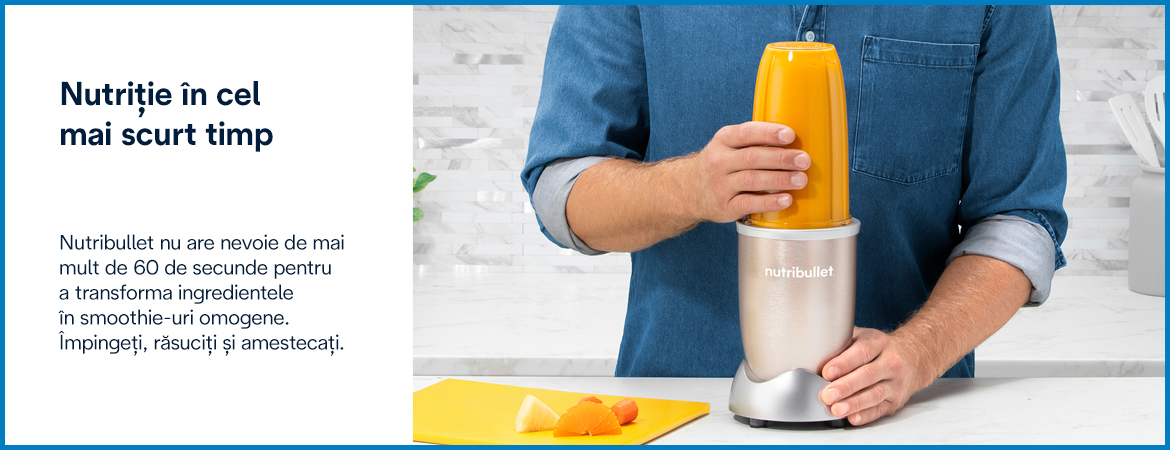 nutribullet nu are nevoie de mai mult de 60 de secunde pentru a transforma ingredientele în smoothie-uri omogene. Împingeți, răsuciți și amestecați.