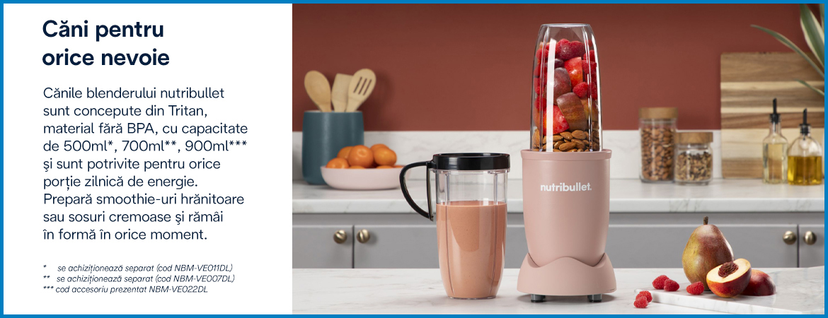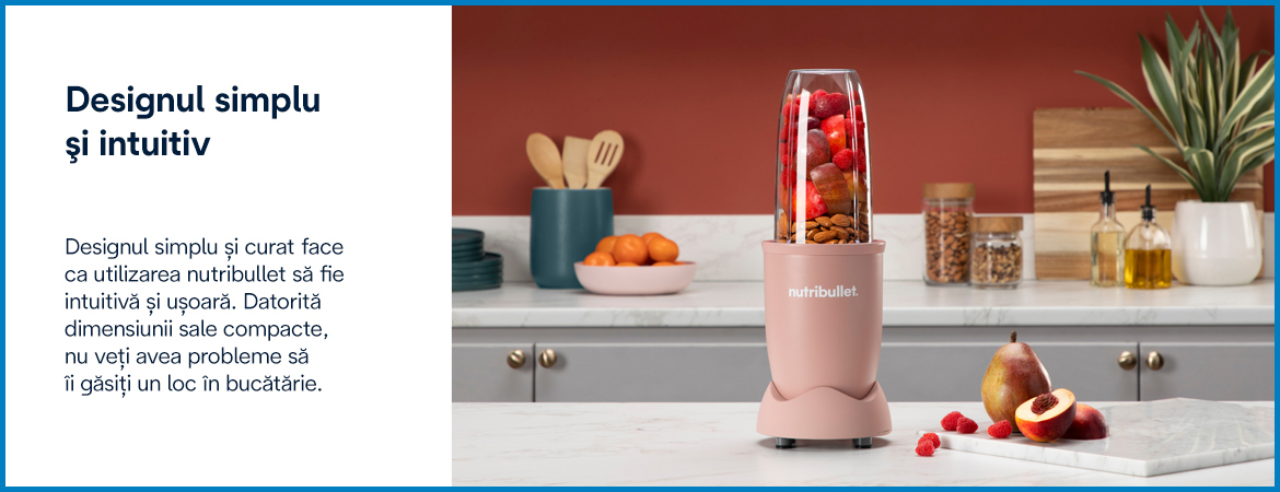 Designul simplu și curat face ca utilizarea nutribullet să fie intuitivă și ușoară. Datorită dimensiunii sale compacte, nu veți avea probleme să îi găsiți un loc în bucătărie.