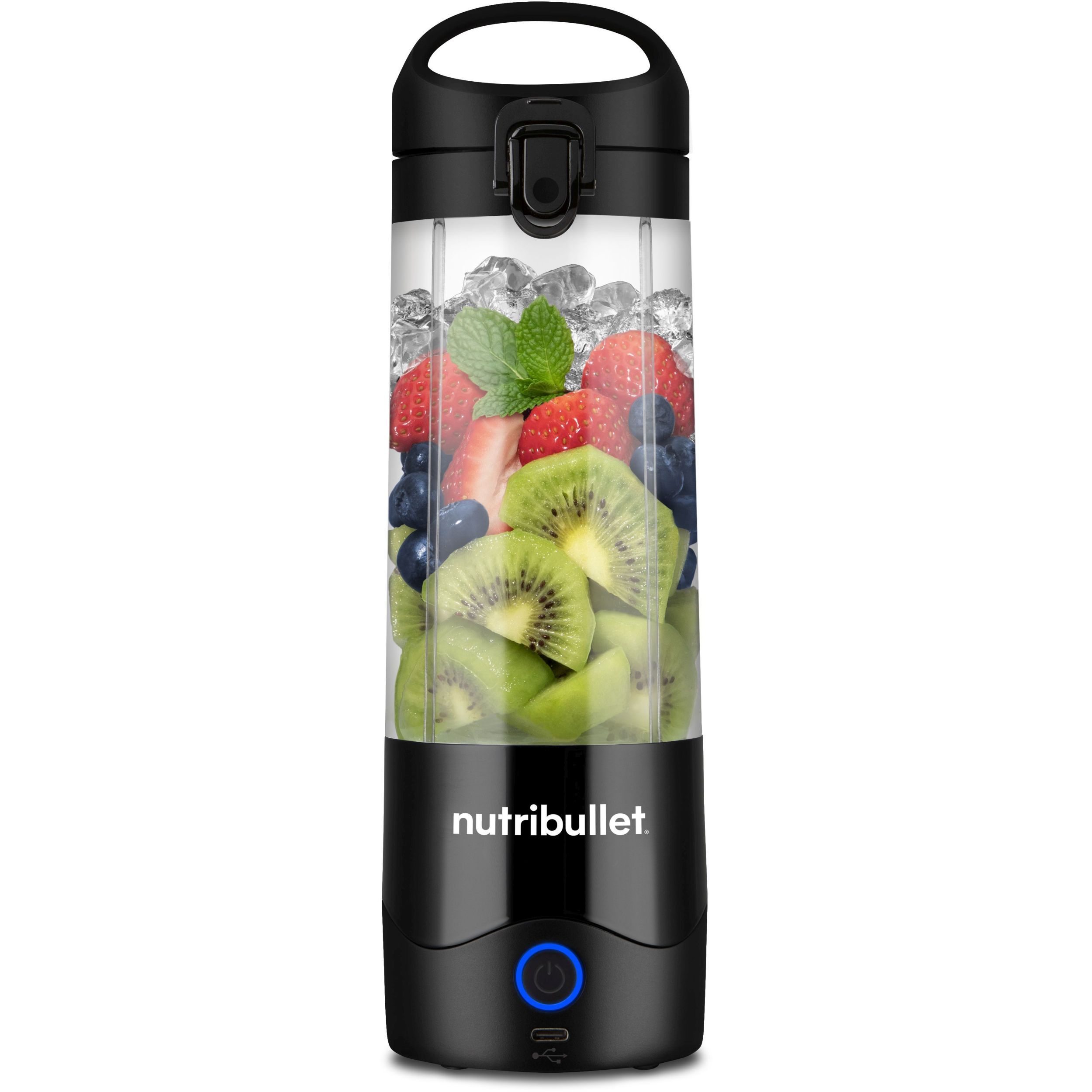 Blender voiaj nutribullet Portable NBP003B - 0C22300092, Bază motor portabilă cu lame de oțel, Capac cu mâner, Cană 475ml, USB-C, Black