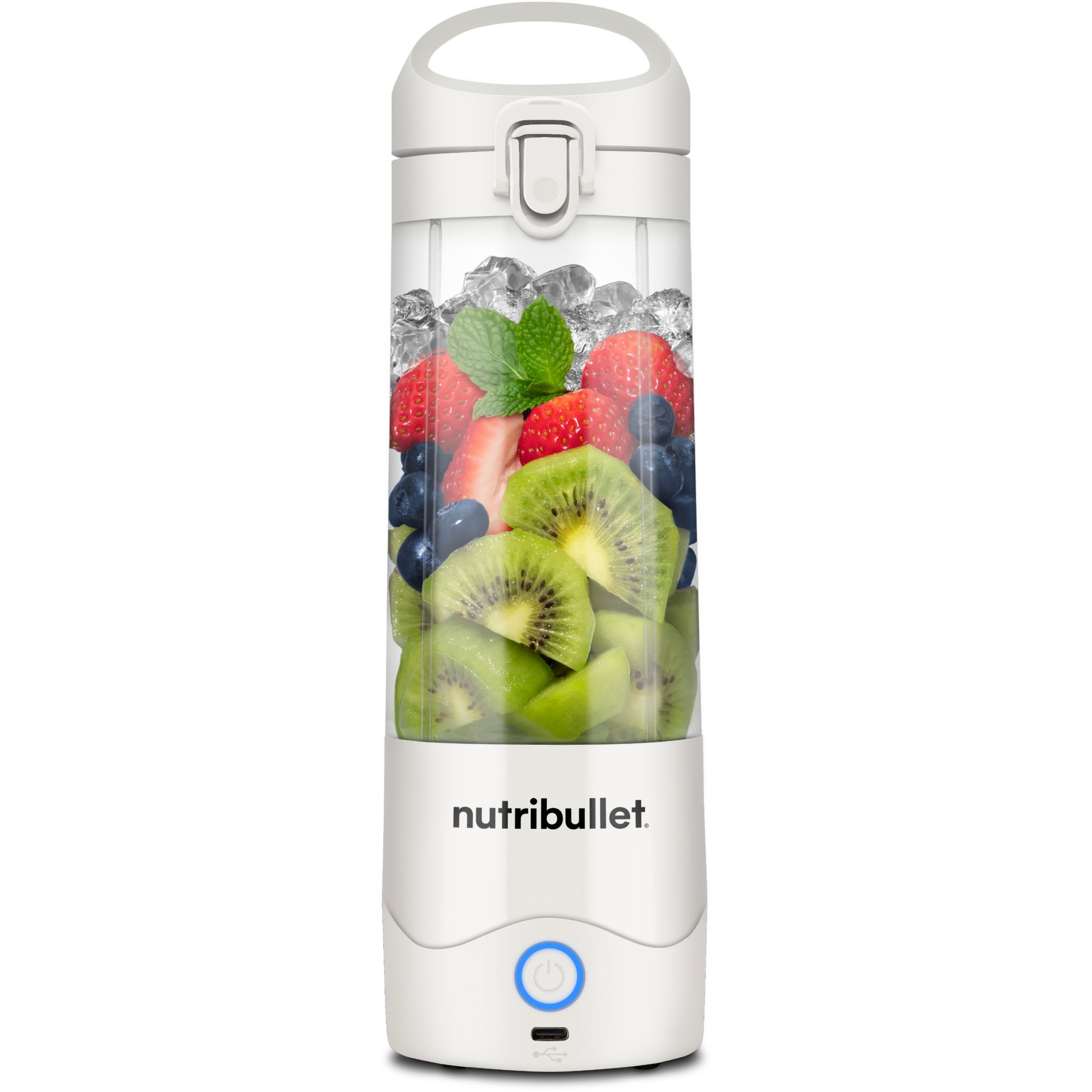 Blender voiaj nutribullet Portable NBP003W - 0C22300093, Bază motor portabilă cu lame de oțel, Capac cu mâner, Cană 475ml, USB-C, Alb