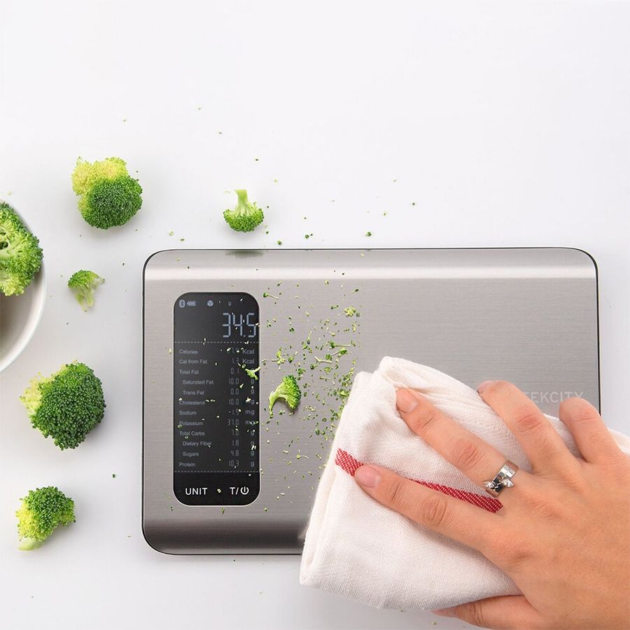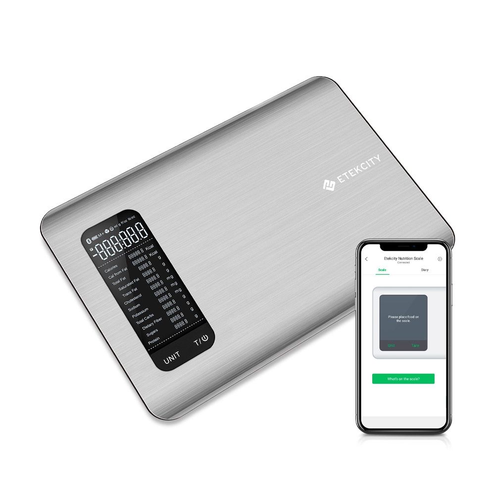 Cantarul va afiseaza informatii esentiale atunci cand vine vorba despre alimente, cum ar fi: numarul de calorii, grasimile, sodiul, proteinele, carbohidratii, colesterolul si fibrele dietetice.