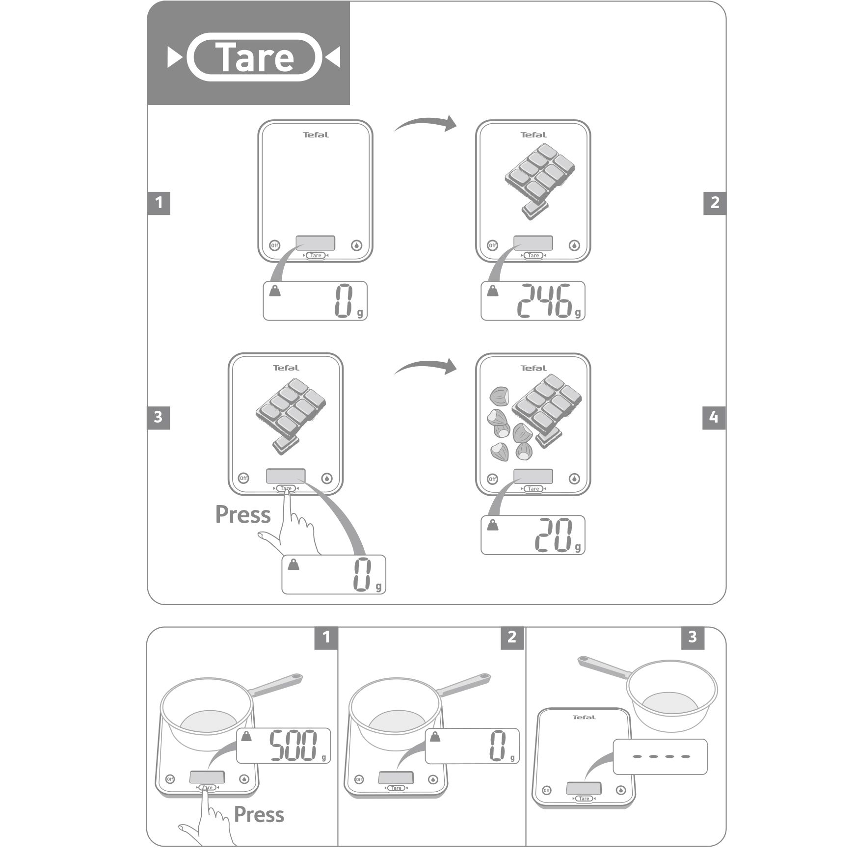 Sunt prevăzute cu funcţia automată Tara, care scade greutatea recipientului dumneavoastră, pentru a cântări cu precizie ingredientele, fără a fi nevoie de ajustări manuale complicate şi care necesită mult timp. Funcția inteligentă TARA asigură cântăriri succesive a mai multor ingrediente în același recipient și te ajută să economisești timp. Nu este nevoie să trasferi fiecare ingredient, ci pur și simplu să resetezi cântarul la 0 și să continui să adaugi ingrediente.