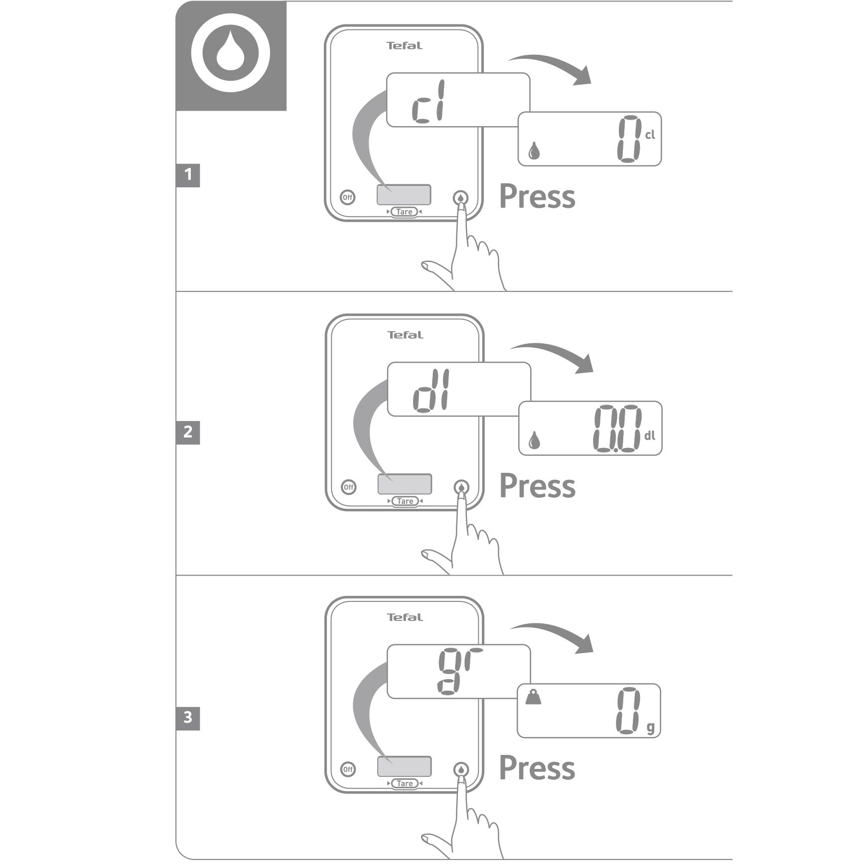 Funcţie de măsurare a lichidelor în cl/dl. Cu funcția pentru lichide poți schimba ușor între cântărirea ingredientelor solide (g) sau lichide (ml) fără niciun risc de eroare în timpul convertirii unităților de măsură.