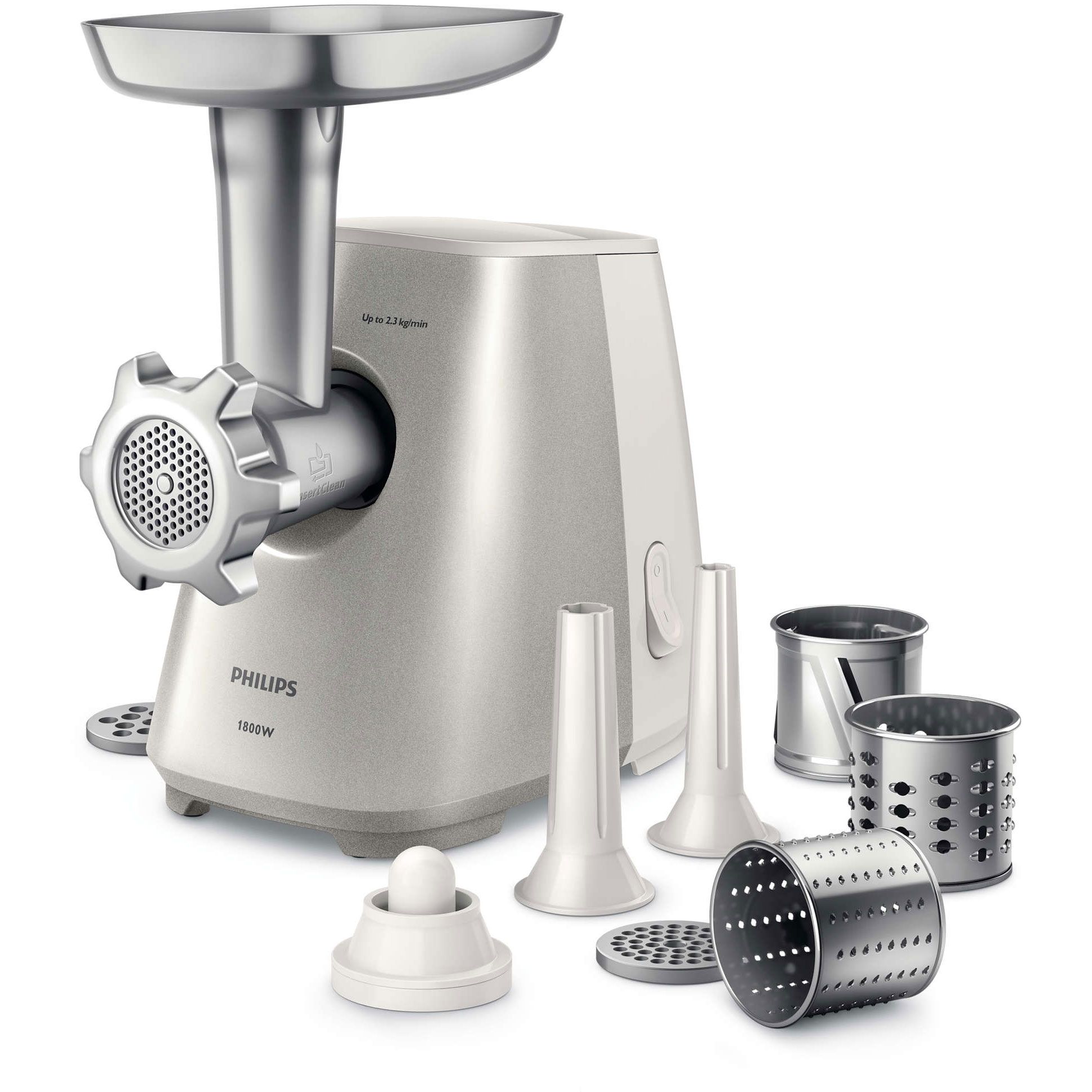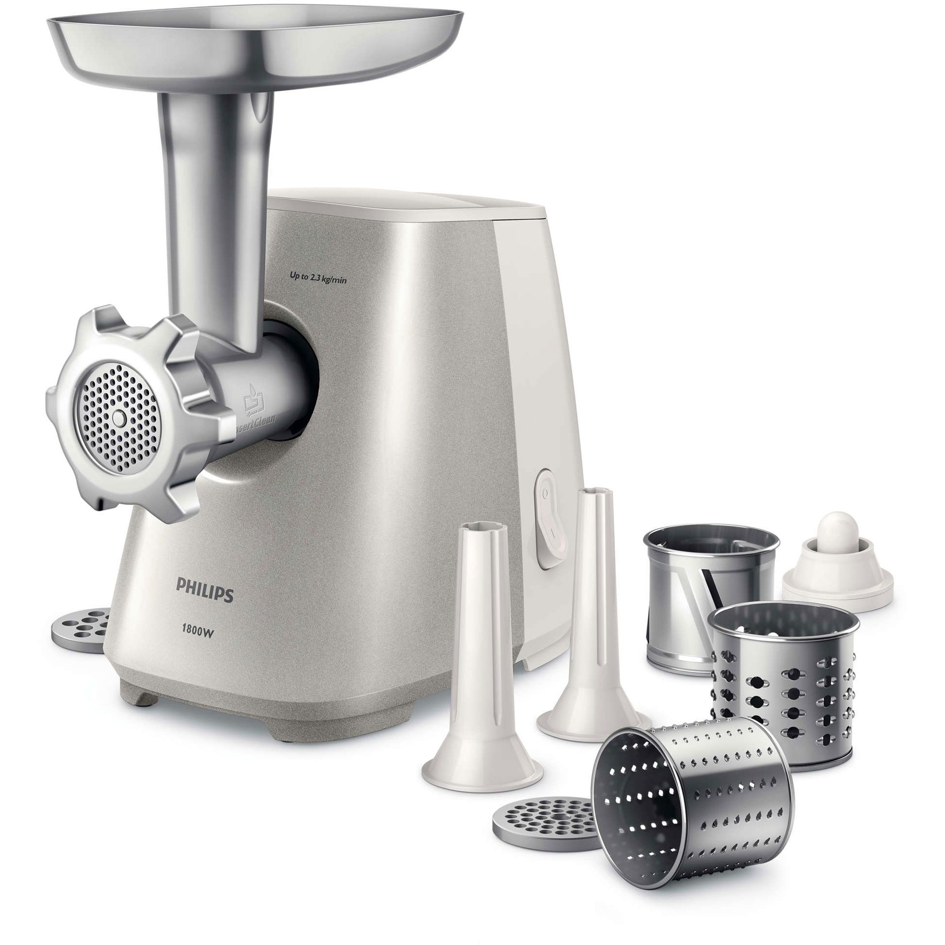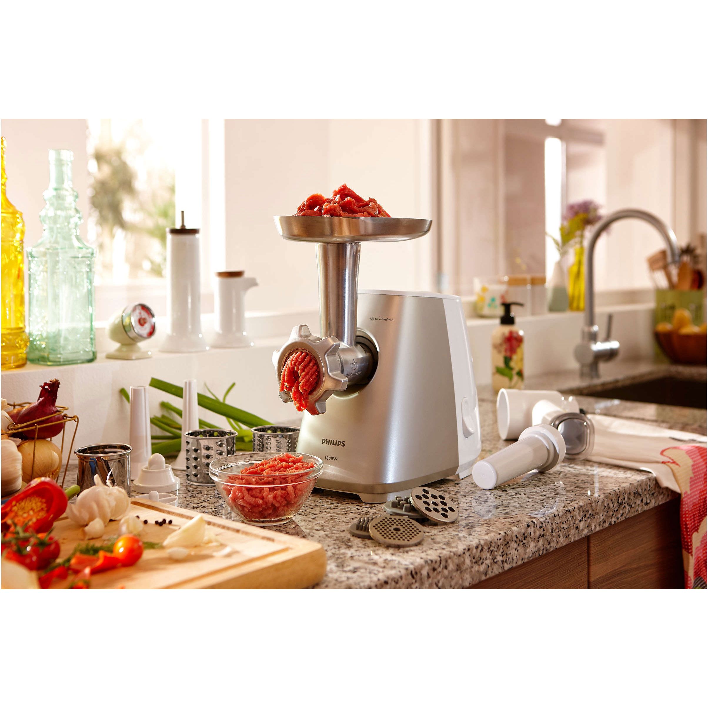 Putere 1800 W, putere nominală motor 500 W. Capacitate de tocare fără efort de până la 2,3 kg într-un minut.