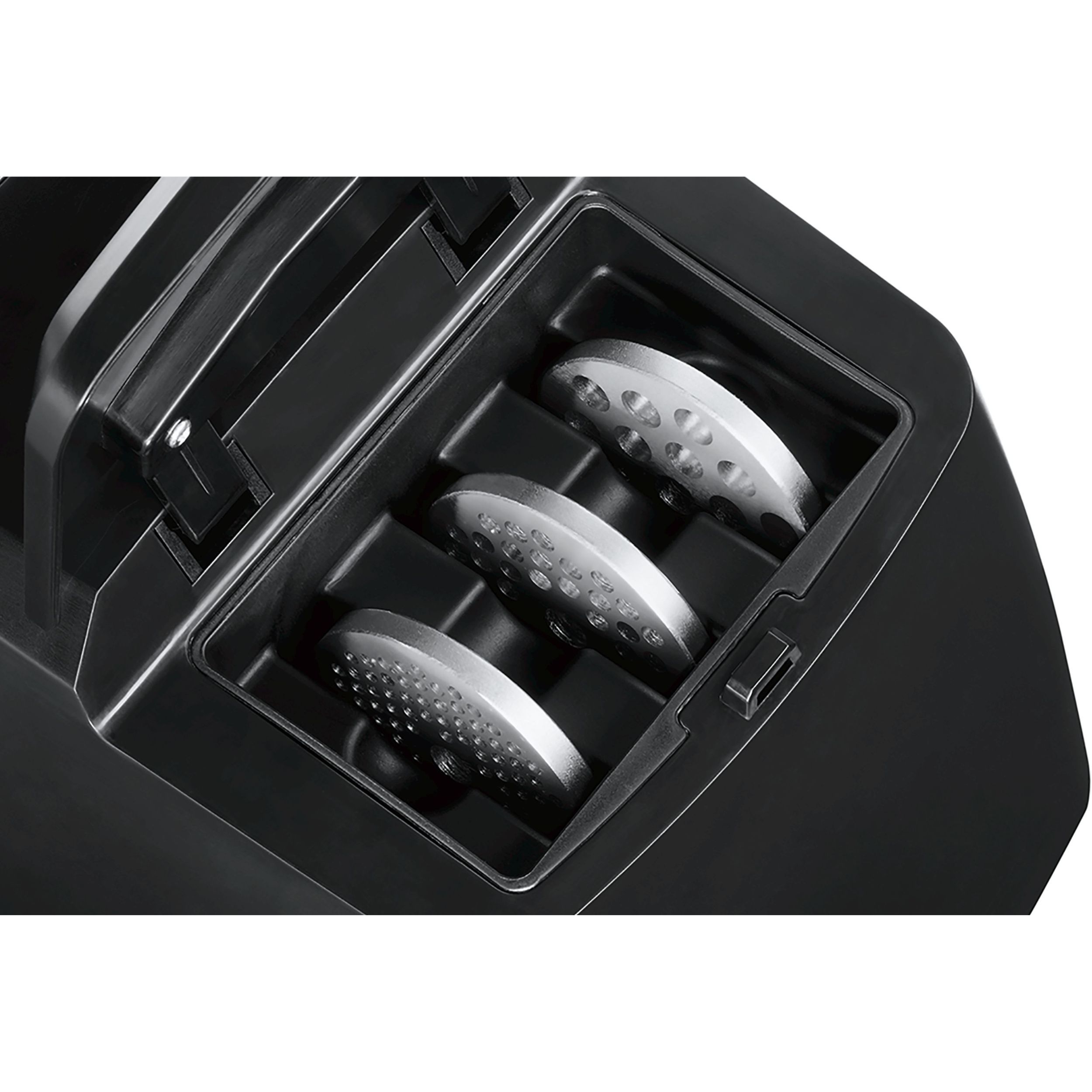 Acum nu mai trebuie să cauți accesoriile! Mașina de tocat carne este multifuncțională, iar discurile pot fi stocate în compartimentul integrat de depozitare pentru a fi mereu la îndemână.