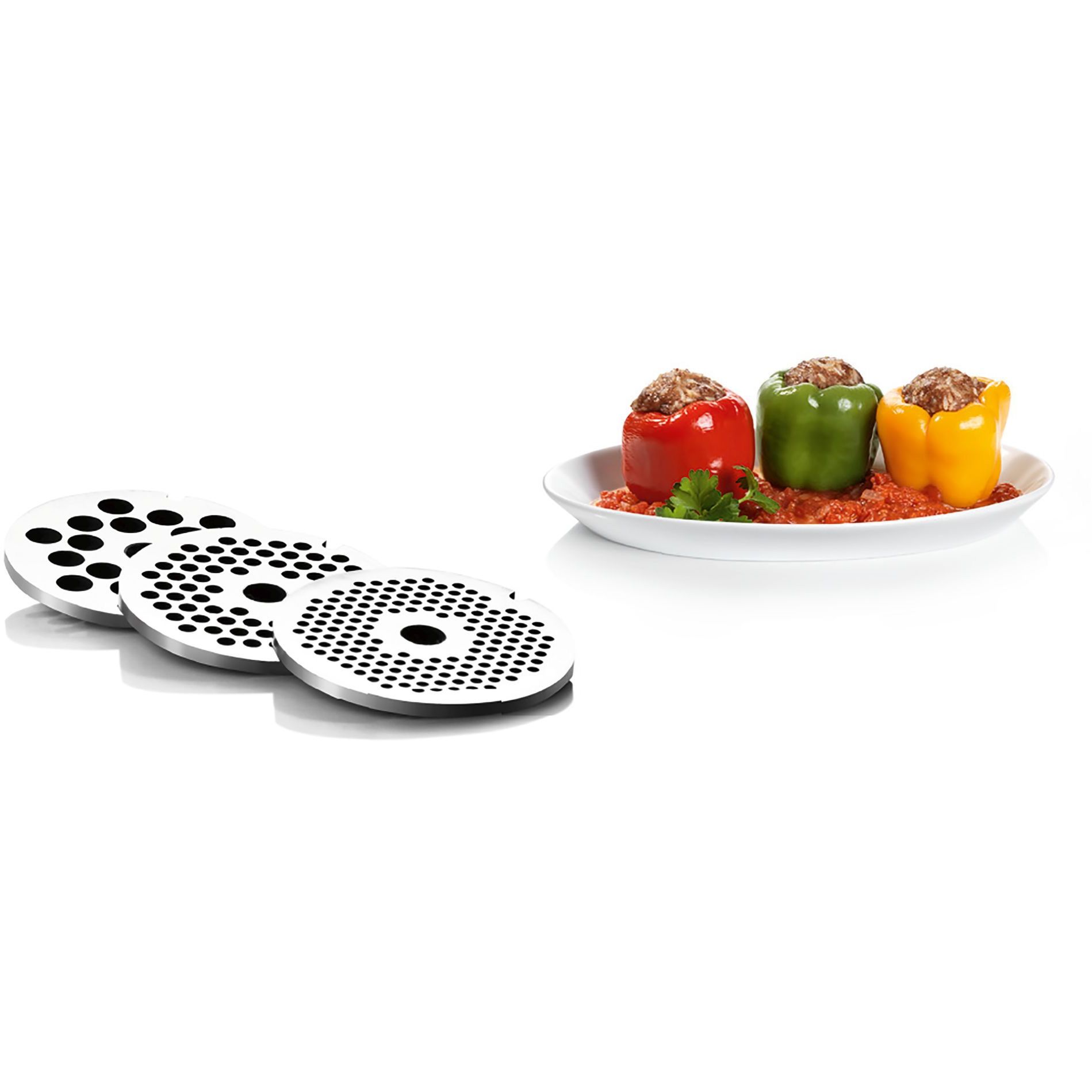 Discuri perforate, adecvate pentru diferite tipuri de alimente. Calitatea în care poți avea încredere. Oțelul inoxidabil este un material durabil, care necesită puțină întreținere, este igienic, are suprafața netedă, nu lasă gust mâncării și foarte ușor de curățat. Toate acestea îl fac cea mai bună alegere pentru mărunțire.