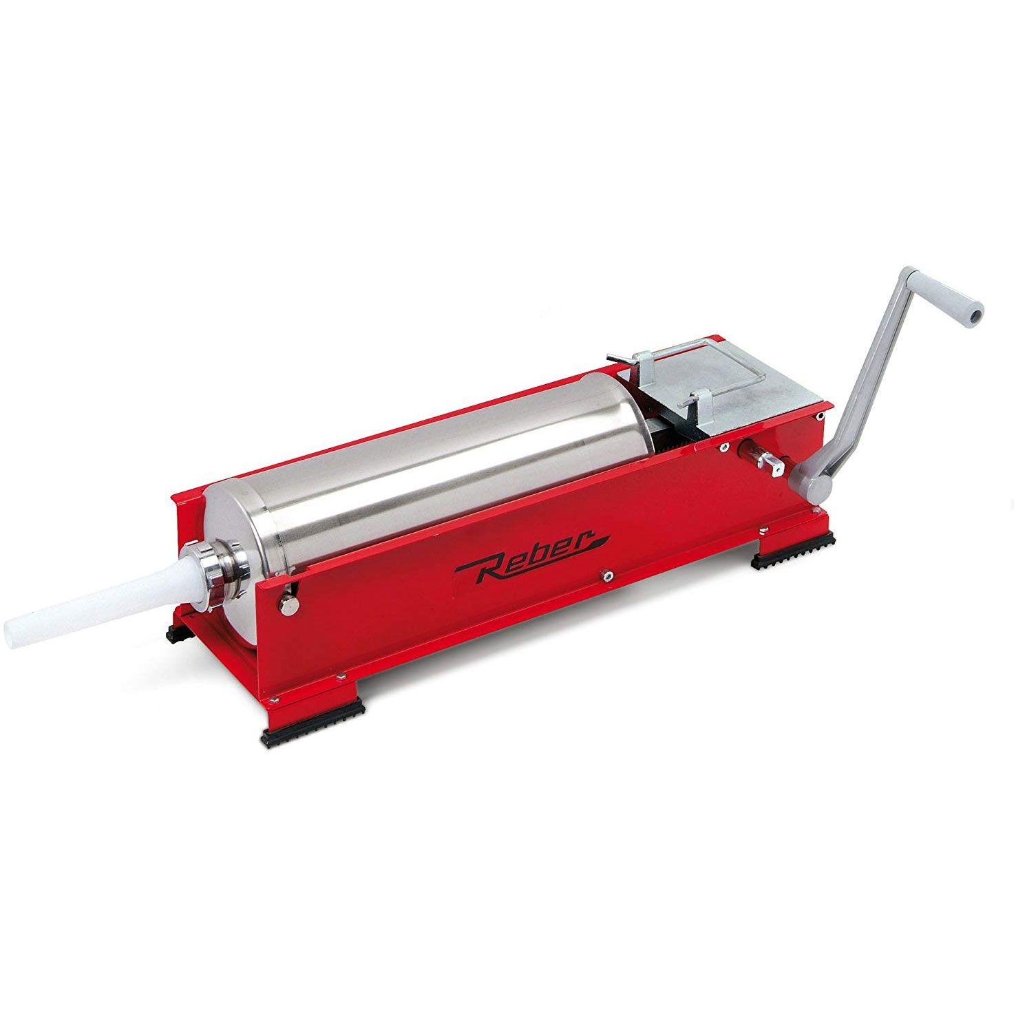 Mașină manuală pentru umplut cârnații Reber 8953 N are o capacitate de 10 lt pentru umplutură: Și permite, datorită celor patru dimensiuni de pâlnii pentru umplutură din plastic, pentru produse alimentare, să prepare diverse tipuri de cârnați de diferite dimensiuni și mărimi.