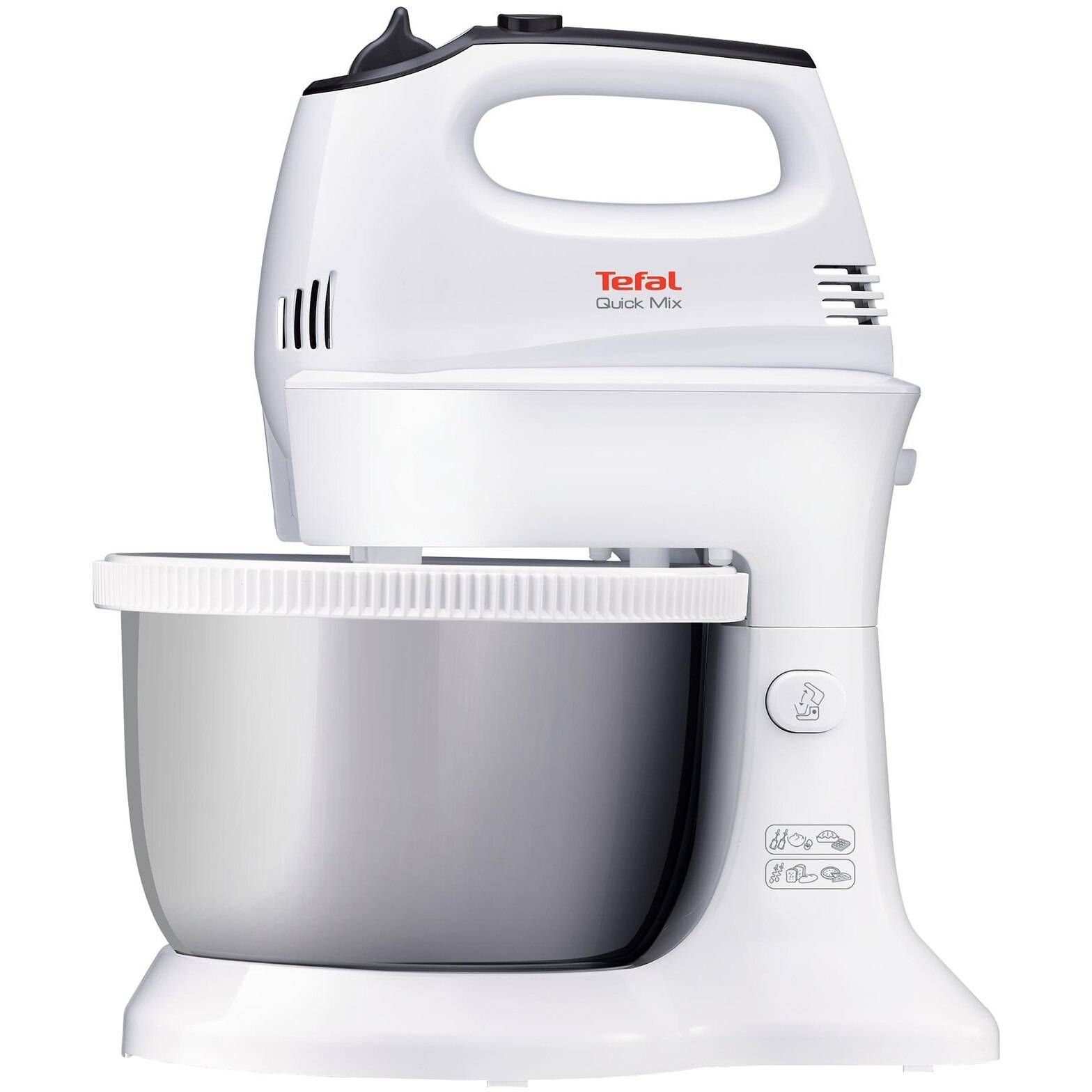Mixerul de mână Quickmix cu bol rotativ: partenerul tău perfect în bucătărie! Descoperă plăcerea de a face prăjituri și produse de patiserie chiar la tine acasă. De la albușuri de ou perfect bătute, la prepararea blatului pentru tort și la frământarea aluatului de pizza, mixerul Quickmix este partenerul tău versatil și puternic în bucătărie.