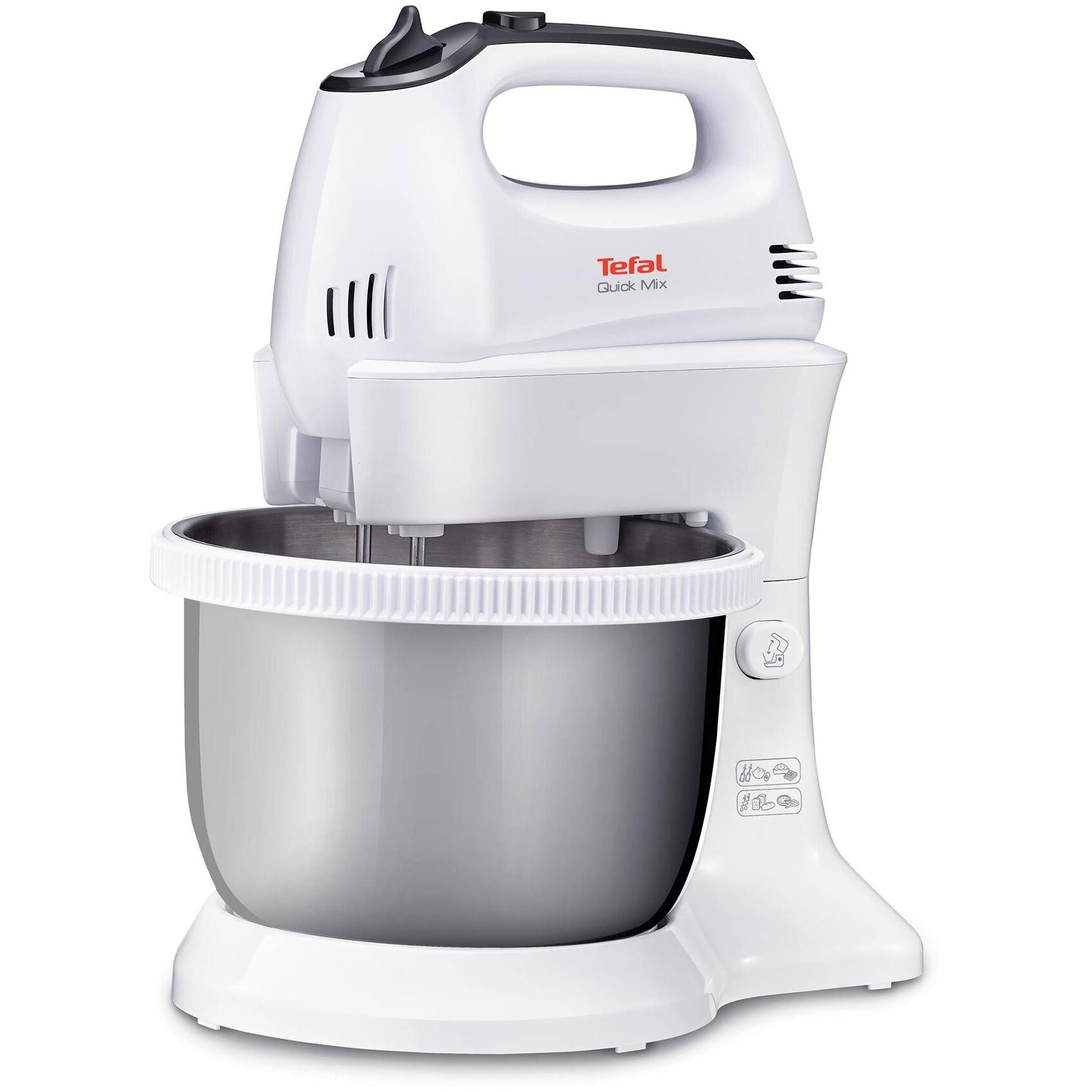 Produsul dispune de 2 seturi de accesorii din inox: 2 teluri pentru aluaturi, amestecuri pentru prăjituri, ouă și frișcă și 2 cârlige pentru aluat de pizza sau pâine, mixerul Quickmix cu bol fix va deveni prietenul tău ideal în bucătărie! Bucură-te de rezultate perfecte de fiecare dată.