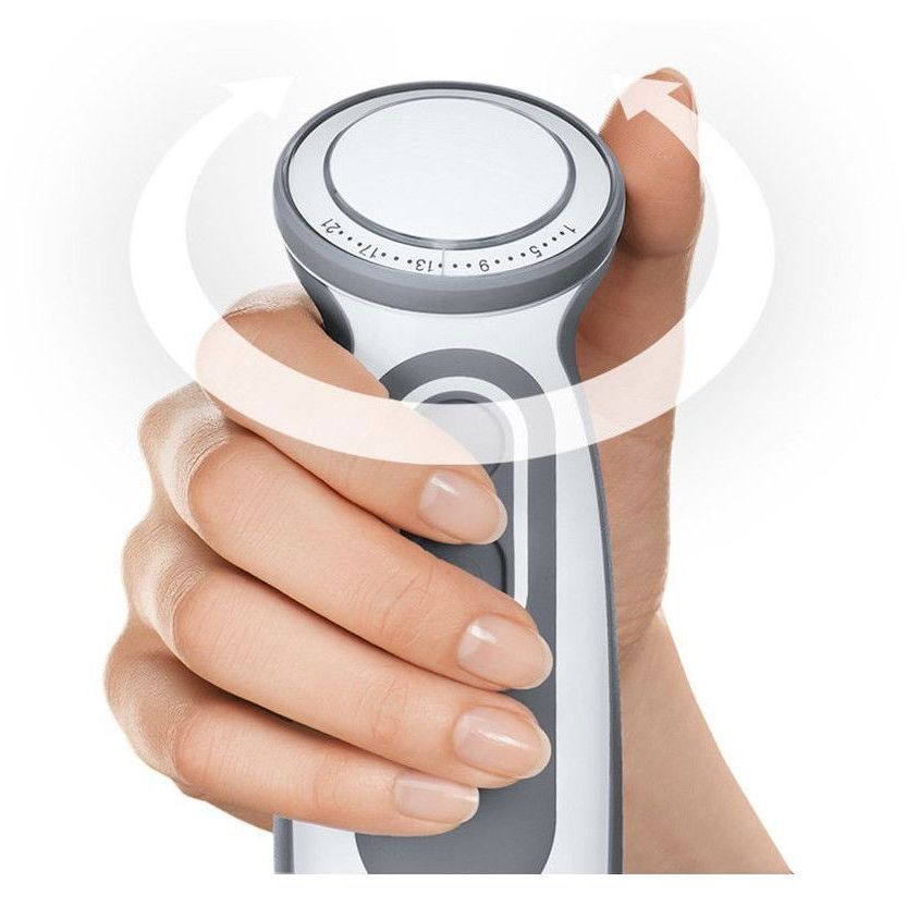 21 viteze. Astfel încât puteți pregăti feluri de mancare ce presupun rețete complexe. Control simplu al vitezelor pentru utilizare cu o singură mână.
