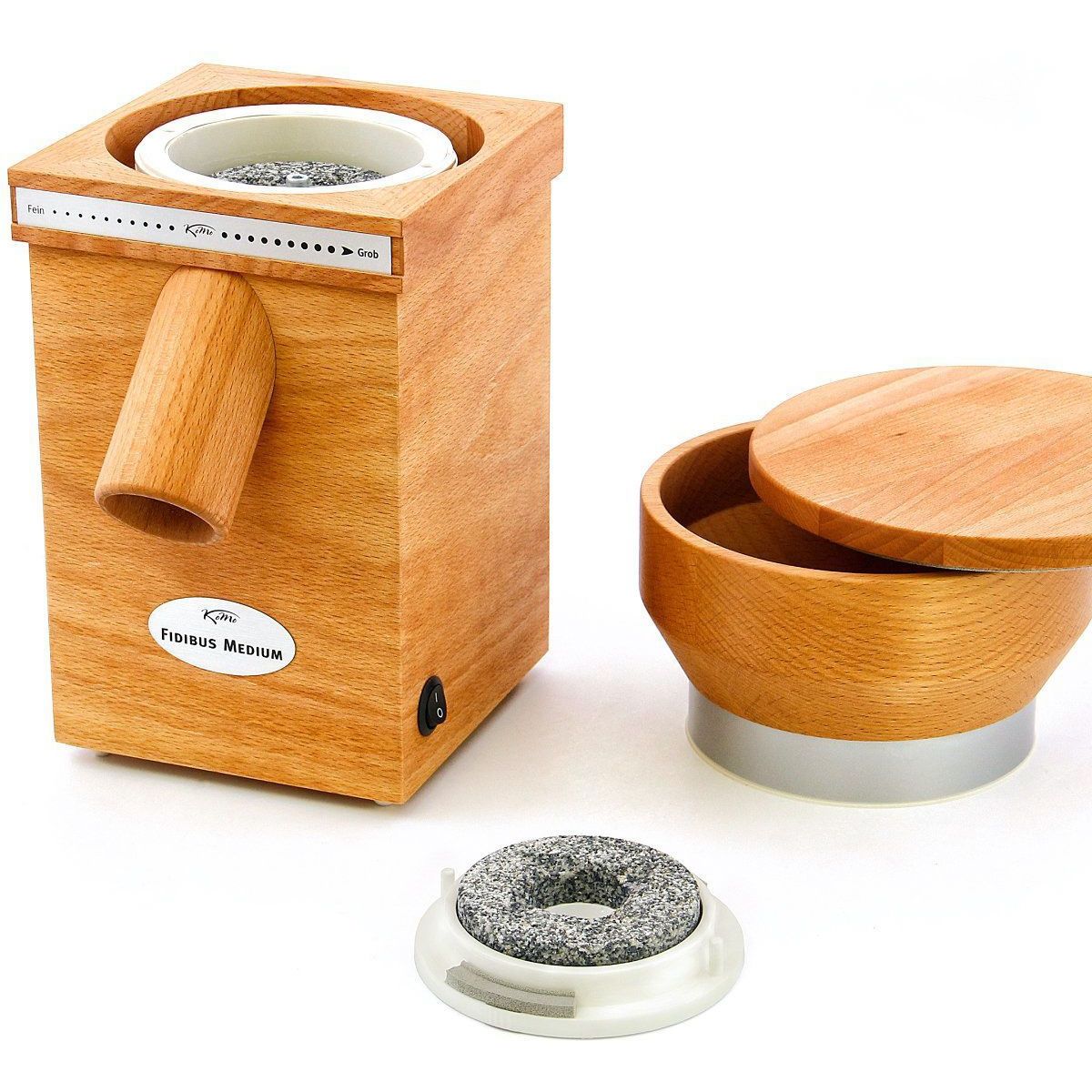 Două devin una: Moara de cereale Fidibus MEDIUM este amestecul perfect dintre succesul nostru FIDIBUS 21 și FIDIBUS CLASSIC solid. Carcasa mică conține un motor puternic de 360 de wați și pietrele mai mari ale FIDIBUS CLASSIC. Și nimic nu le poate descompune.