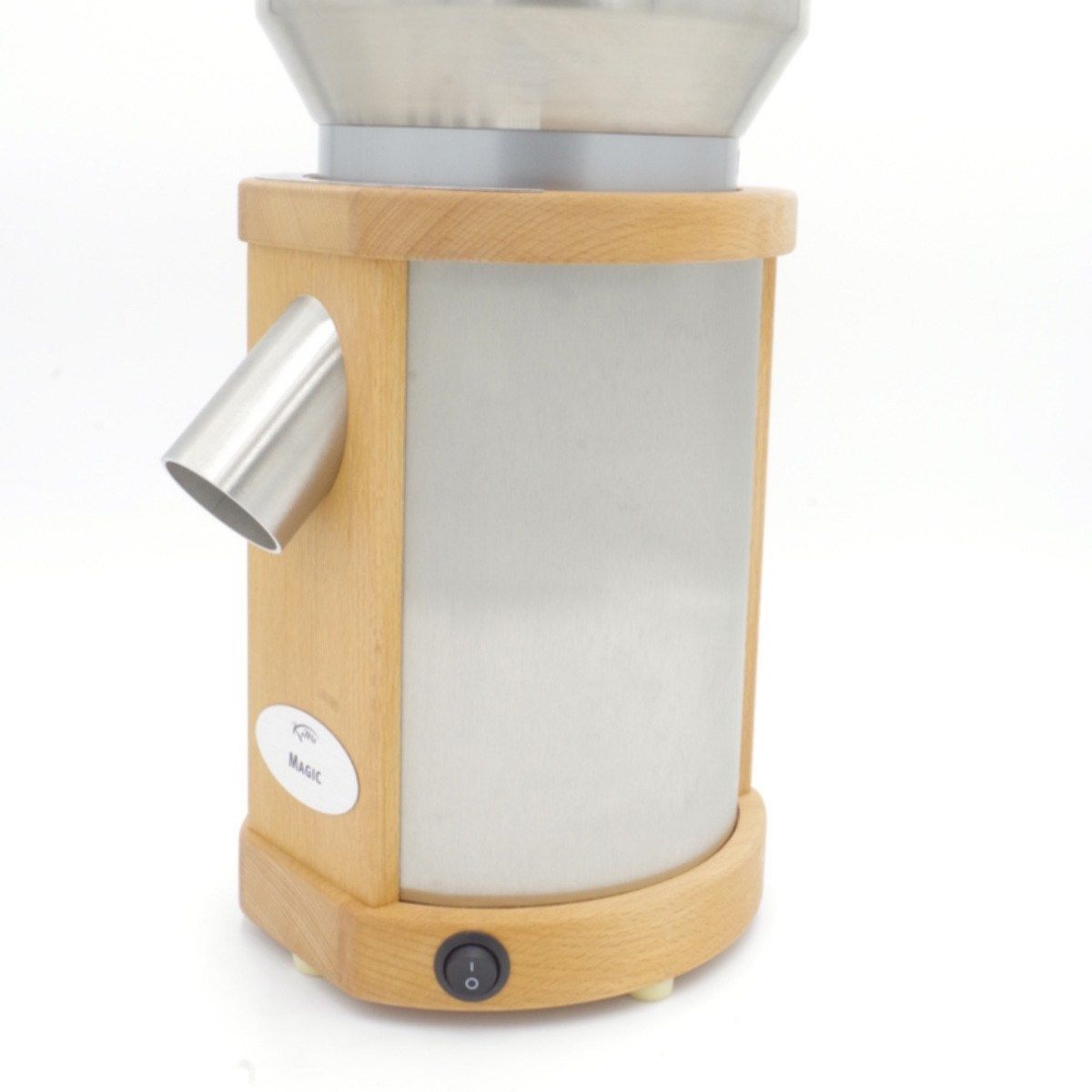 Moara noastră de cereale Magic. Este nemiloasă, modernă și strălucitoare, frumoasă. Aceasta nu este o magie, ci pur și simplu lemn natural și tehnologie precisă în combinație perfectă. Oțelul inoxidabil conferă fabricii clasice care poartă eleganță modernă și devine un punct culminant în fiecare bucătărie la modă. Ca toate morile de cereale de la KoMo, această mică minune este echipată cu un motor industrial puternic și pietre perfect aliniate.