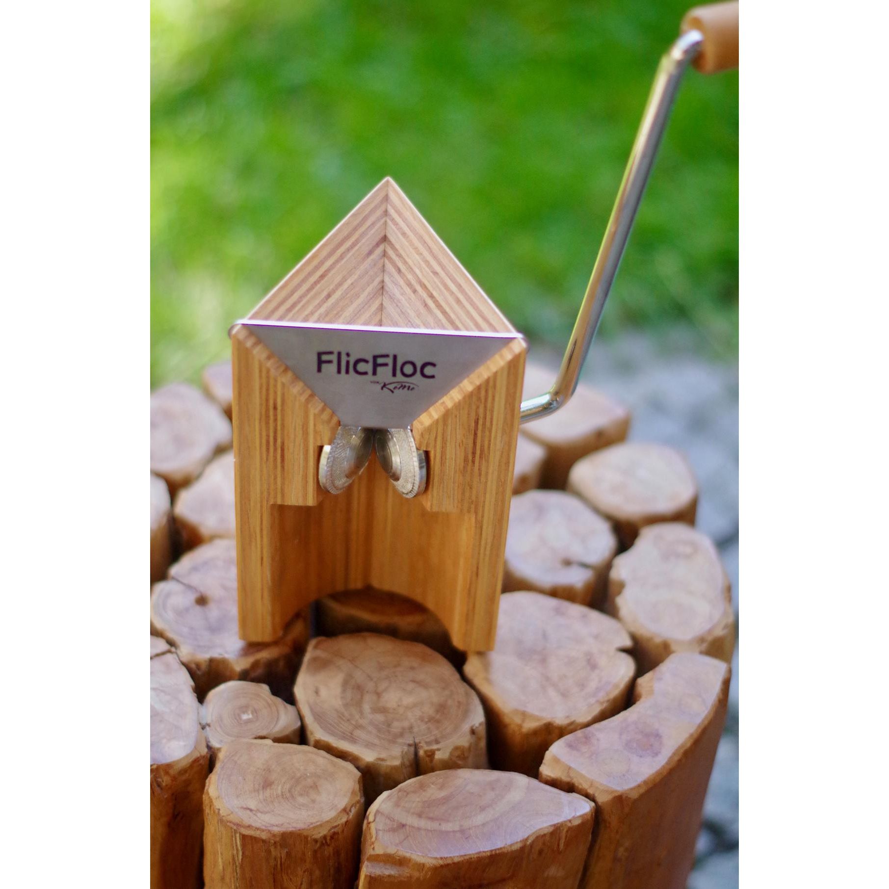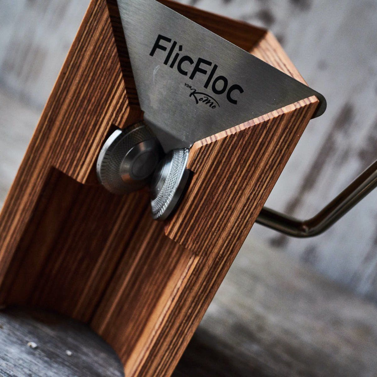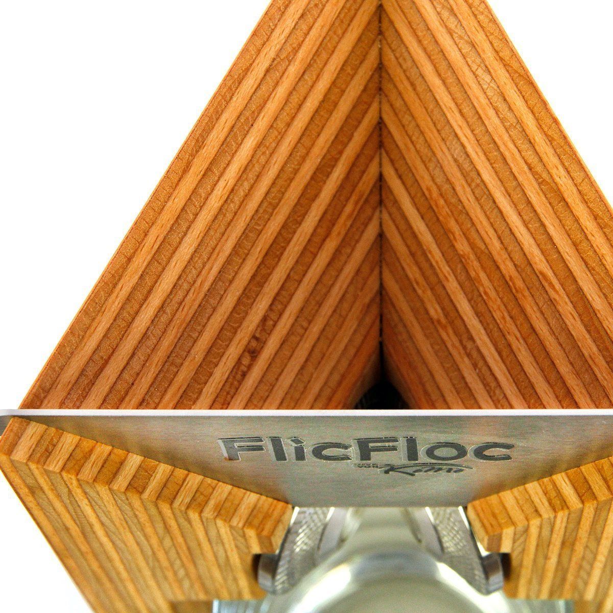 Vă rugăm să rețineți că densitatea fulgului FlicfFloc. Este deja setată la un nivel optim pentru fulgii cu grosime medie și nu poate fi modificată. În plus, nu este posibil să acționați FlicFloc în mod optim fără a-l fixa pe marginea unei mese cu clema cu șurub.flicfloc-specificatii.jpg