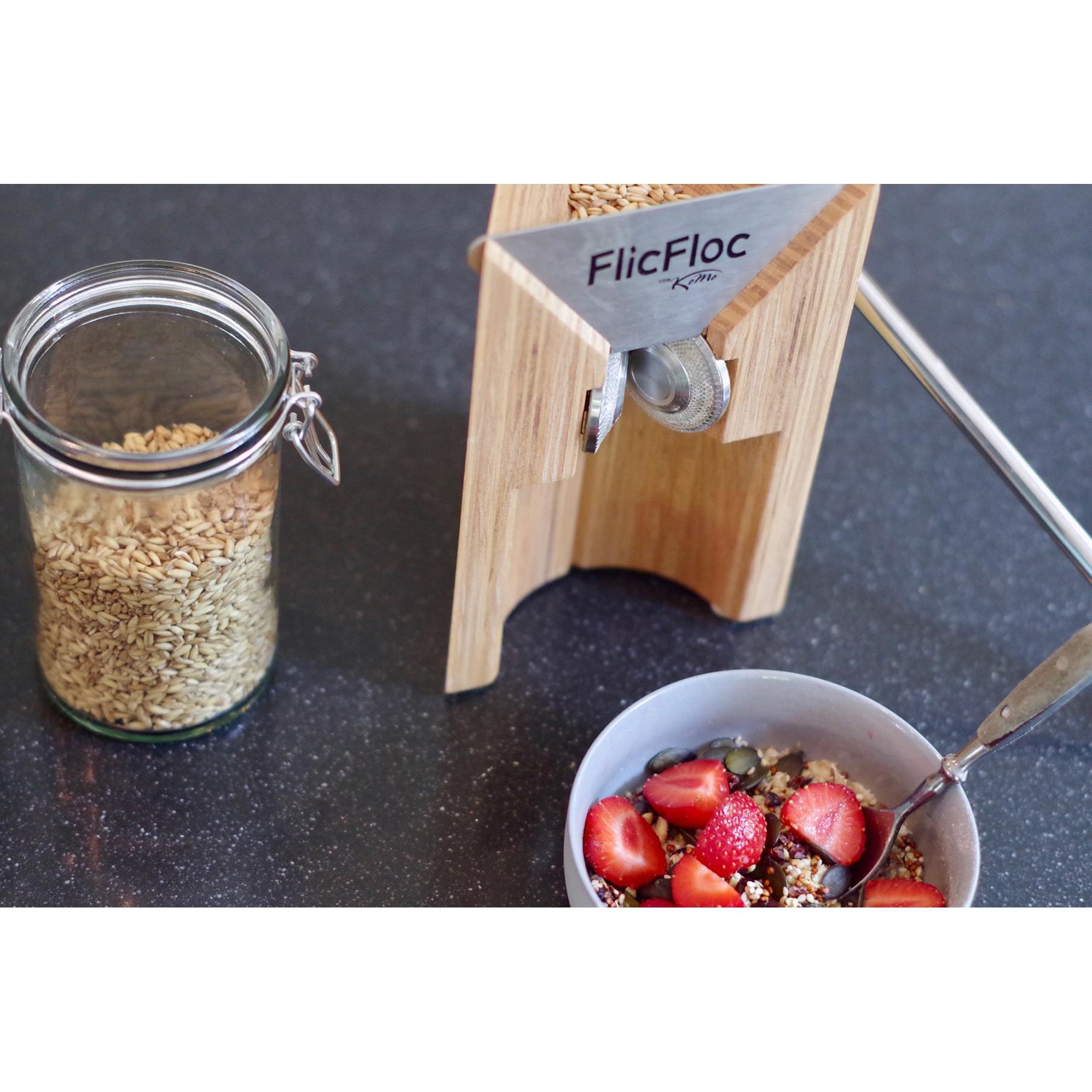 Apropo. Nu puteți stoarce doar ovăzul cu concasorul de fulgi FlicFloc, dar, desigur, aproape orice alt bob. Indiferent dacă este vorba de grâu, secară, spelta, spelta verde etc. Dar asta nu este tot, semințele și miezurile pot fi, de asemenea, minunat transformate în fulgi (de exemplu semințe de in, semințe de cânepă, susan, semințe de mac și multe altele). și amaranth pot fi utilizate Process FlicFloc. Cu alte cuvinte, vă puteți pregăti pur și simplu muesli-ul proaspăt dimineața!
