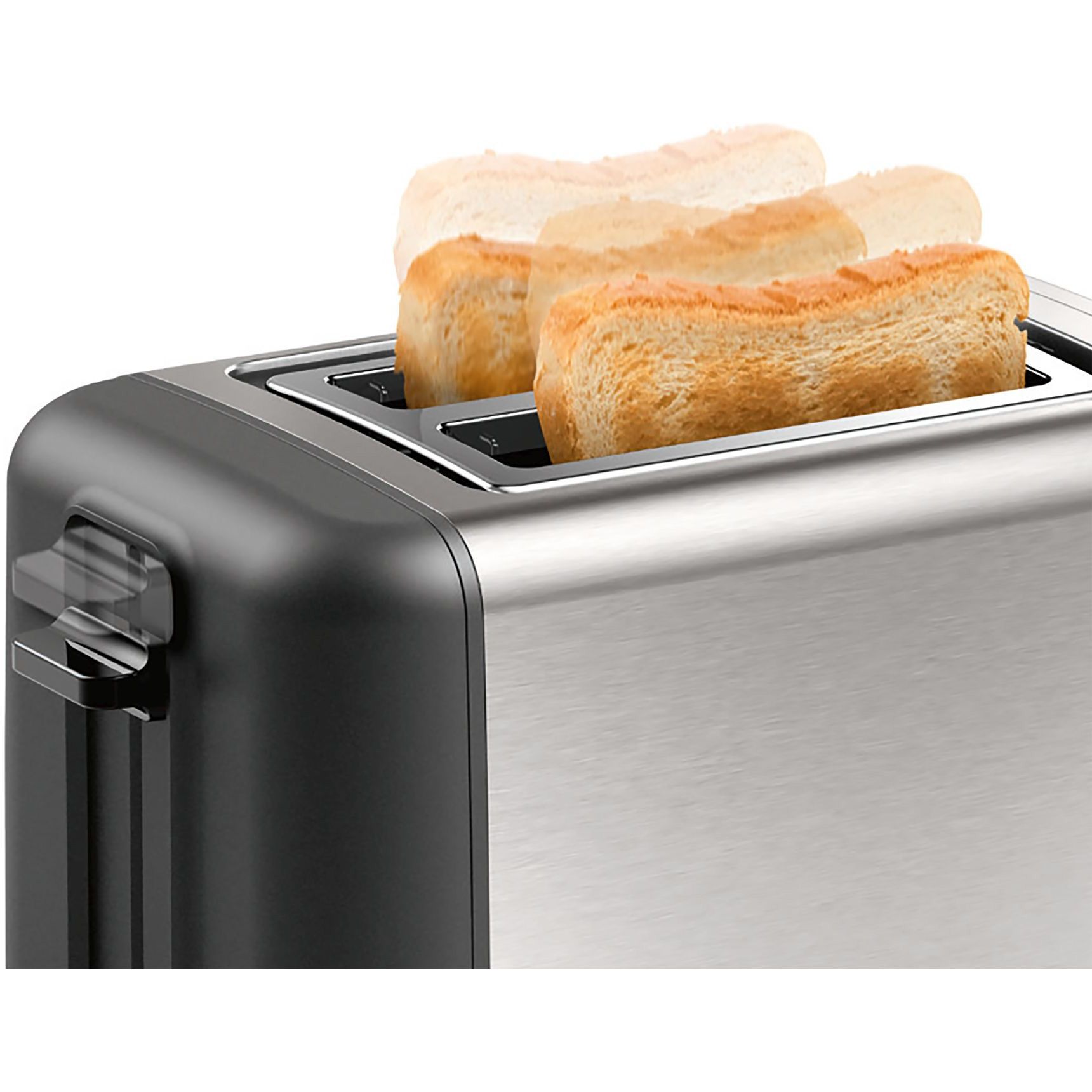 Pâinea perfectă prăjită te așteaptă. Uneori, ai această imagine în minte - o bucată de pâine brun-aurie perfectă prăjită. Și apoi rezultatul nu este cel așteptat. Atunci când deții un prăjitor de pâine cu centru automat, acesta îți va oferi felia de pâine prăjită așa cum ți-o dorești. Pâinea este automat centrată și se asigură prăjirea perfectă.