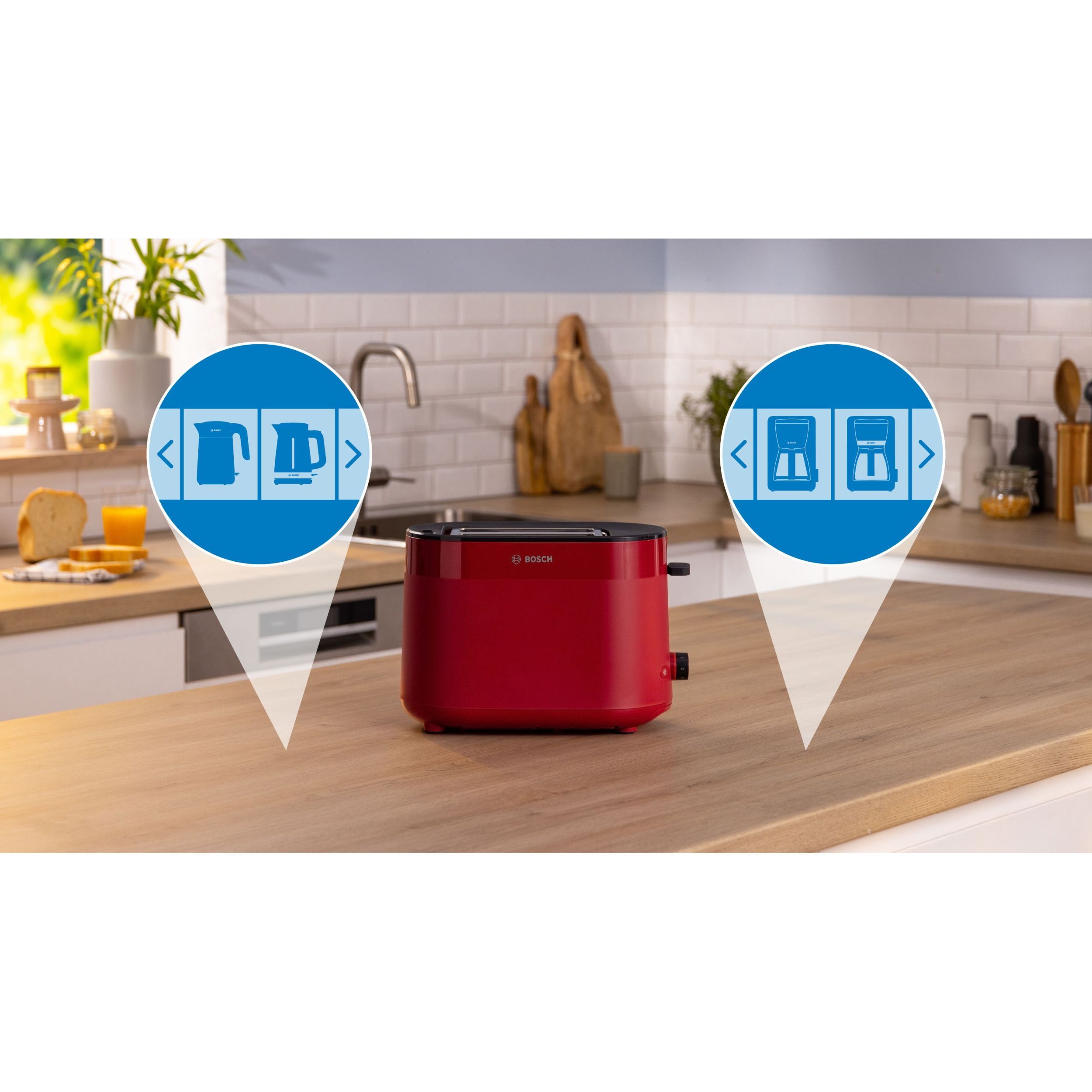 Prăjitor de pâine BOSCH MyMoment TAT2M124, 2 sloturi, Dezghețare, Încălzire, Grătar chifle, High Lift, Roșu