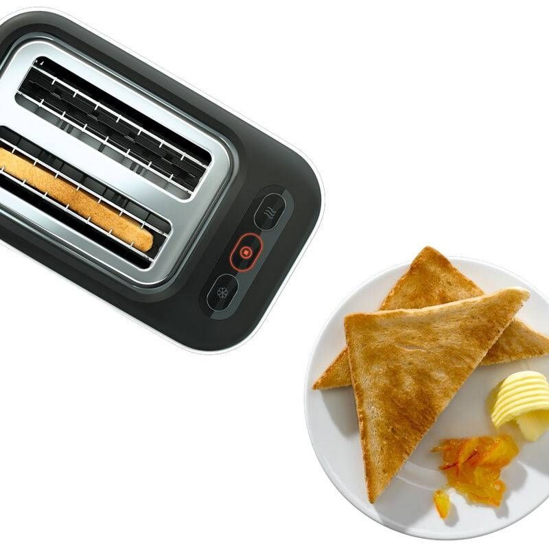 Printr-o simplă apăsare de buton, puteți alege să reîncălziți pâinea, să o dezghețați, sau să opriți procesul curent, cu ajutorul butoanelor plasate pe partea superioară a prăjitorului. Totodată, funcțiile de rumenire și ridicare pot fi accesate, folosind butoanele din partea laterală a prăjitorului.