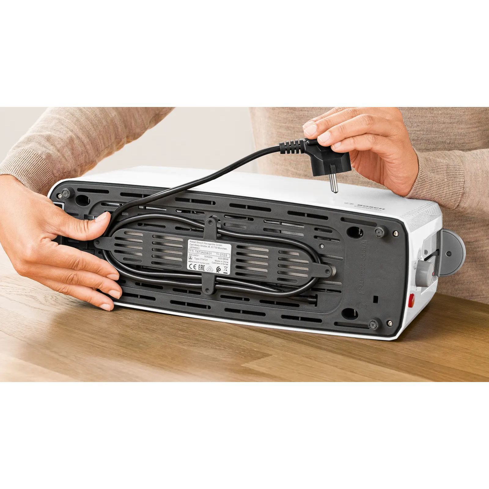 Suport de încălzire rabatabil integrat: acest suport aflat în partea superioară păstrează pâinea crocantă și caldă