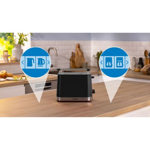 Prăjitor pâine compact BOSCH MyMoment TAT4M223, 2 sloturi, Dezghețare, Încălzire, High Lift, Negru