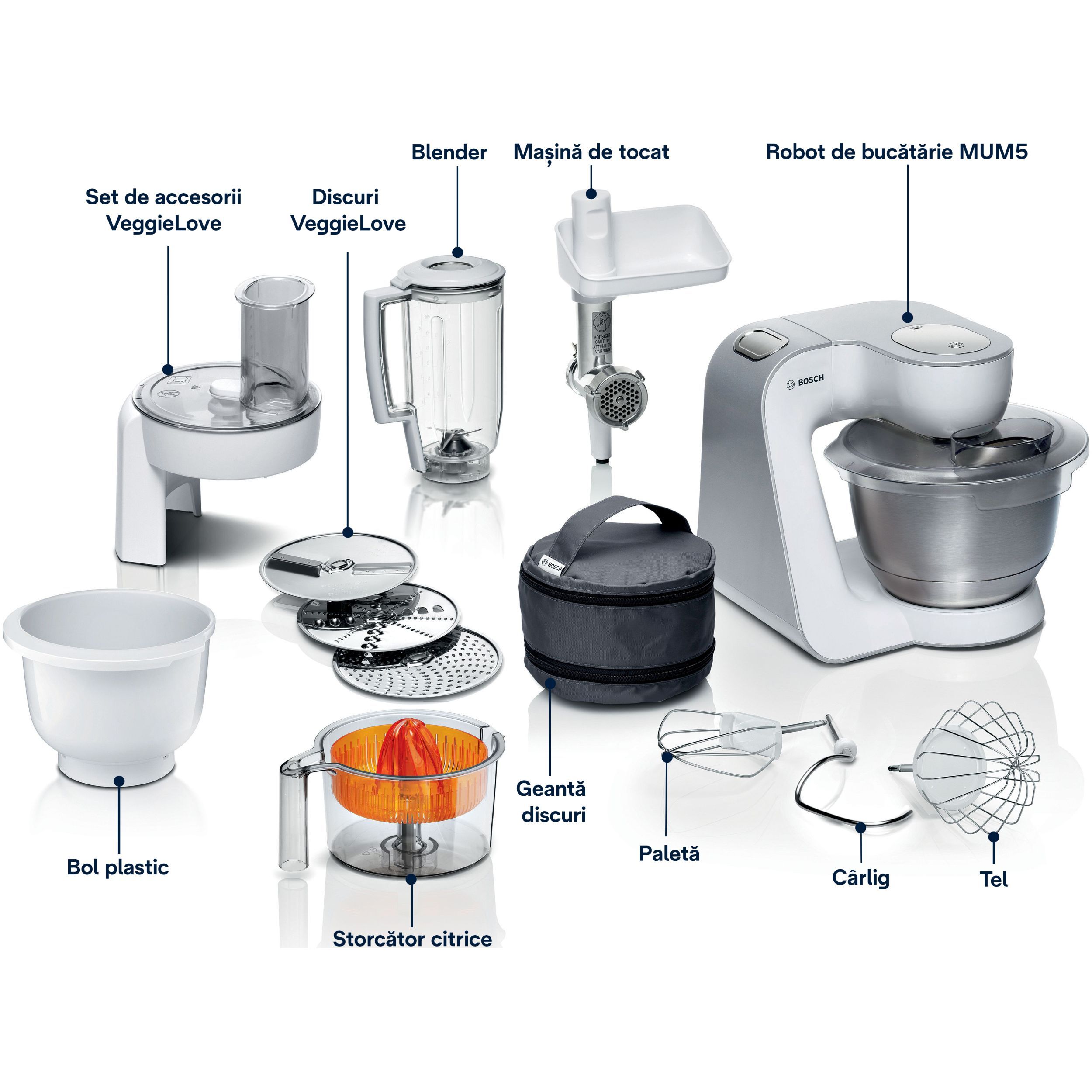 Fiecare are anumite preferințe în ceea ce privește pregătirea diferitelor compoziții. Dacă nu este deja inclus accesoriul de care ai nevoie, poți alege dintr-o gamă largă de accesorii opționale precum cel de înghețată, râșniță, accesoriu pentru fursecuri, mașină de tocat carne, Cube Cutter și altele. BOSCH are accesoriile potrivite nevoilor tale.