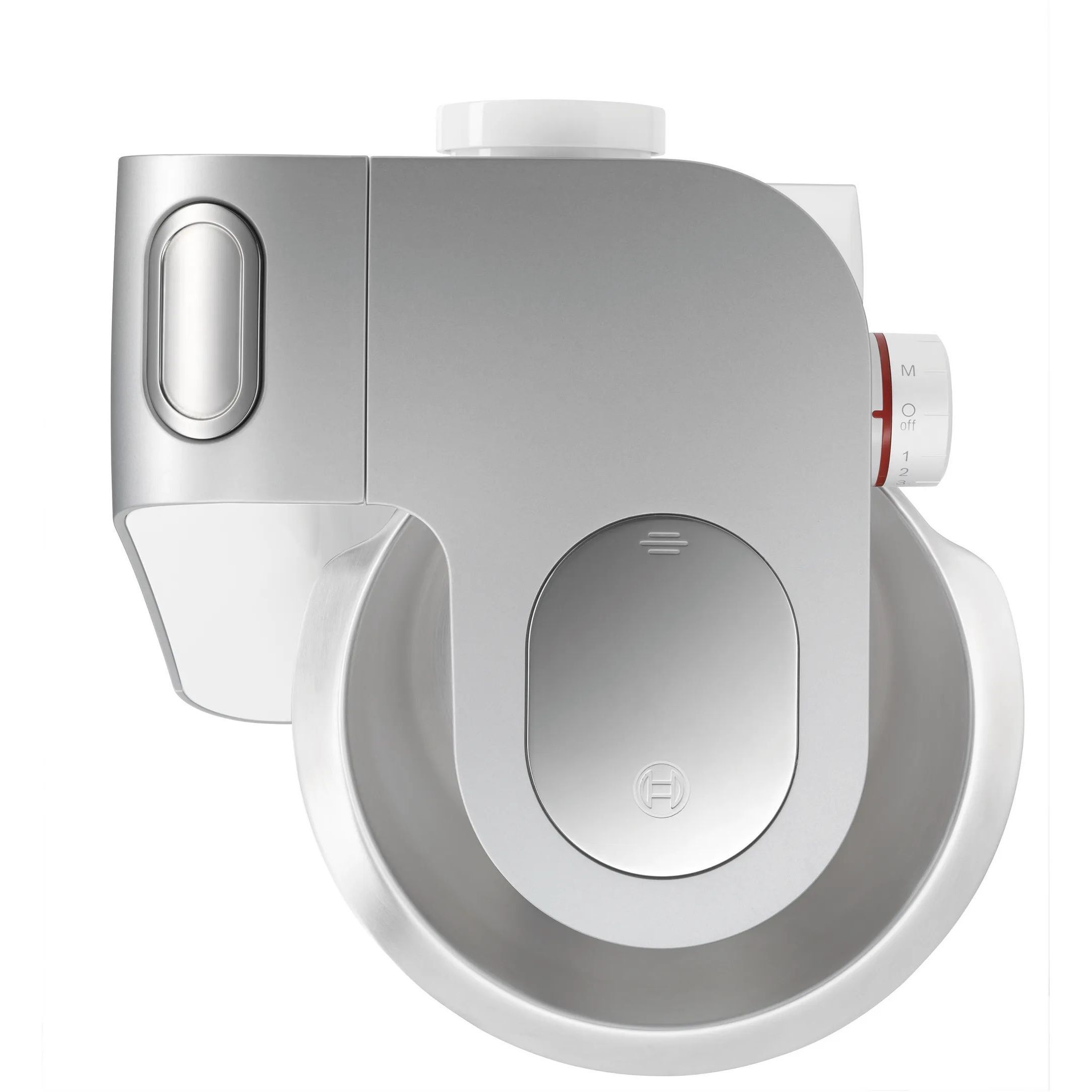 Nu lăsa aluaturile dificile să îți strice buna dispoziție. Dimensiunile mici și compacte ale robotului îți asigură mai mult spațiu în bucătărie, iar înclinarea accesoriilor de mixare a compozițiilor către partea din spate a bolului permite adăugarea ușoară a ingredientelor. Poziția de repaus este utilă pentru umplerea ușoară a bolului prin partea din față.
