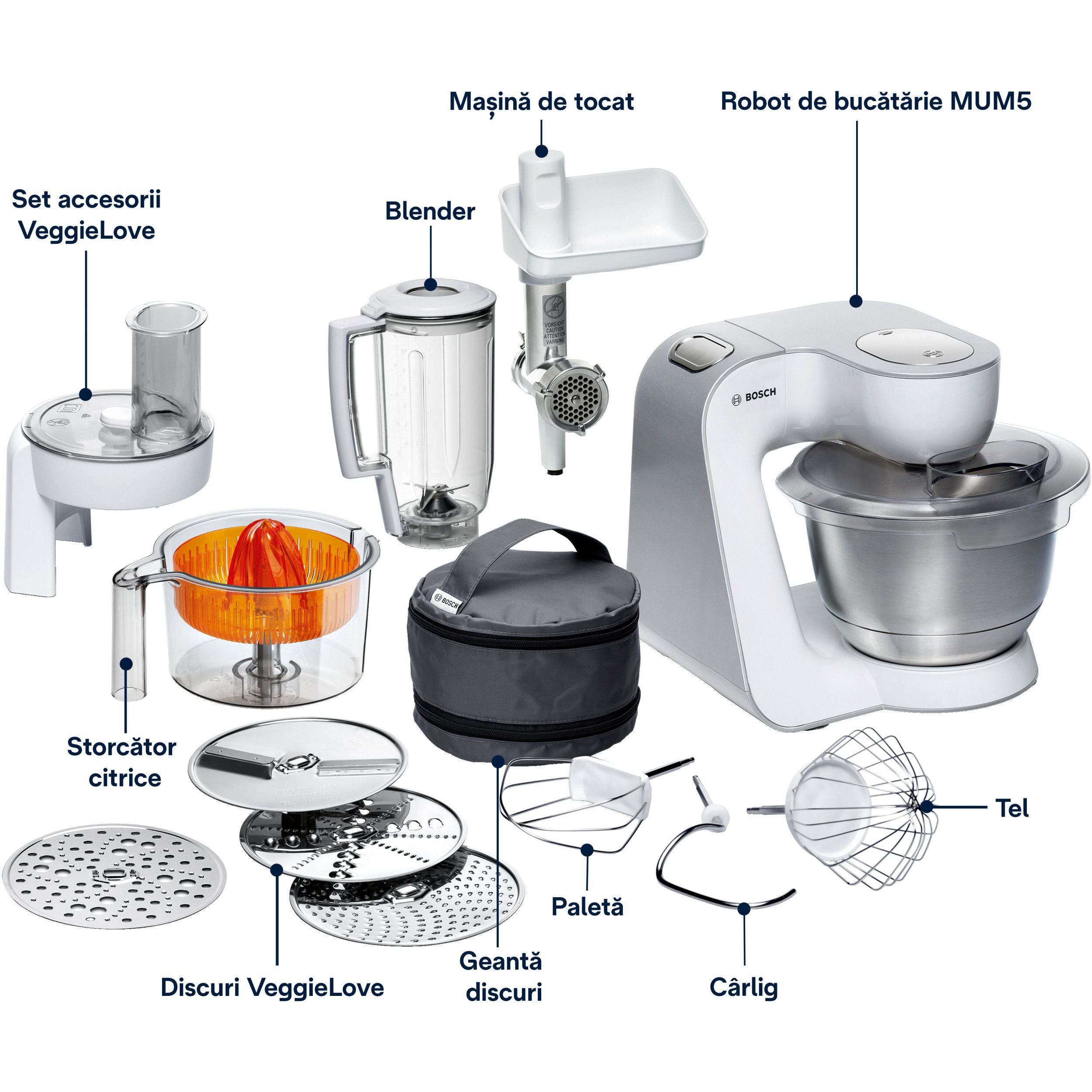 - Ușor de curățat: accesoriile pot fi spălate în mașina de spălat vase;