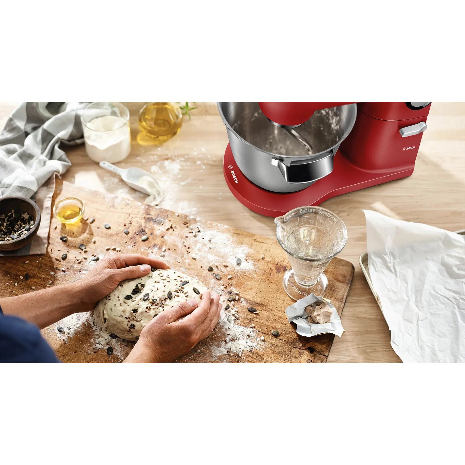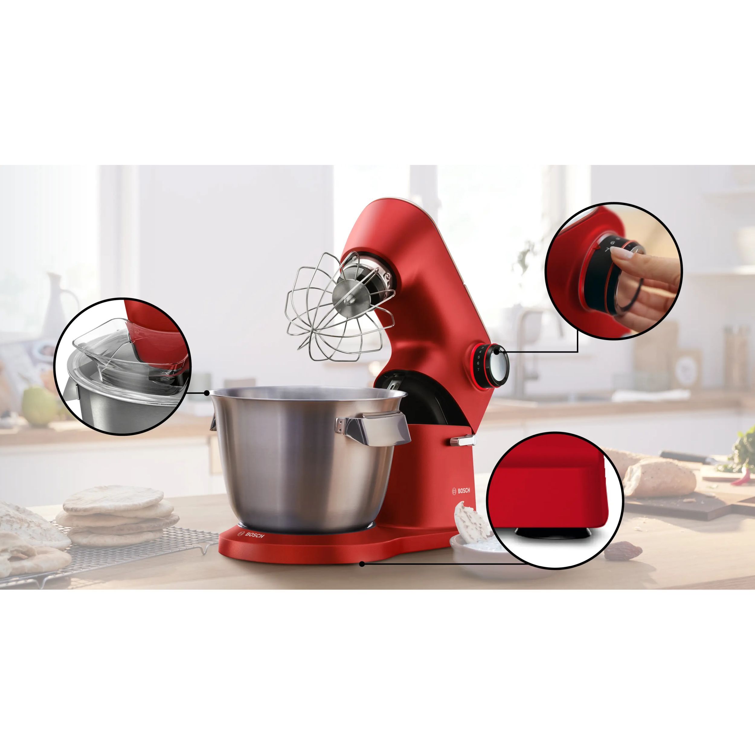 - Senzor Smart Dough: viteză de mixare constantă chiar și în cazul aluatului greu și al cantităților mari.