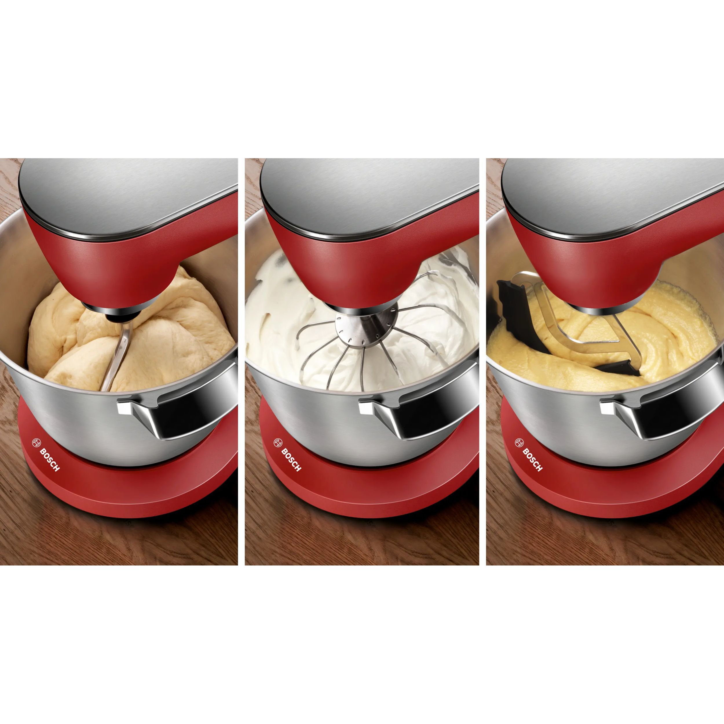 Ingredientele trebuie procesate uniform pentru a obține cele bune compoziții. Setul OptiMUM de patiserie asigură rezultate perfecte datorită telului de amestecare (potrivit pentru bol), a telulului metalic de bătut (cu înălțime reglabilă) și a cârligului de frâmântat de înaltă performanță, cu formă specială. Acestea pot fi spălate în mașina de spălat vase.